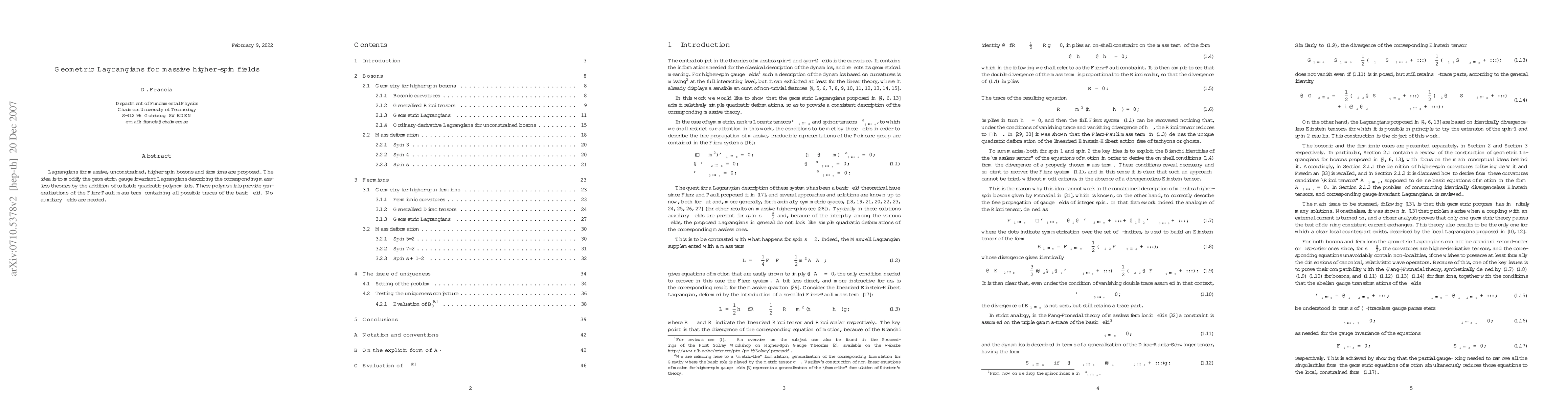 Lagrangians for massive, unconstrained, higher-spin bosons and fermions are proposed. The idea is to modify the geometric, gauge invariant Lagrangians describing the corresponding massless theories by the addition of suitable quadratic polynomials. These polynomials provide generalisations of the Fierz-Pauli mass term containing all possible traces of the basic field. No auxiliary fields are needed.