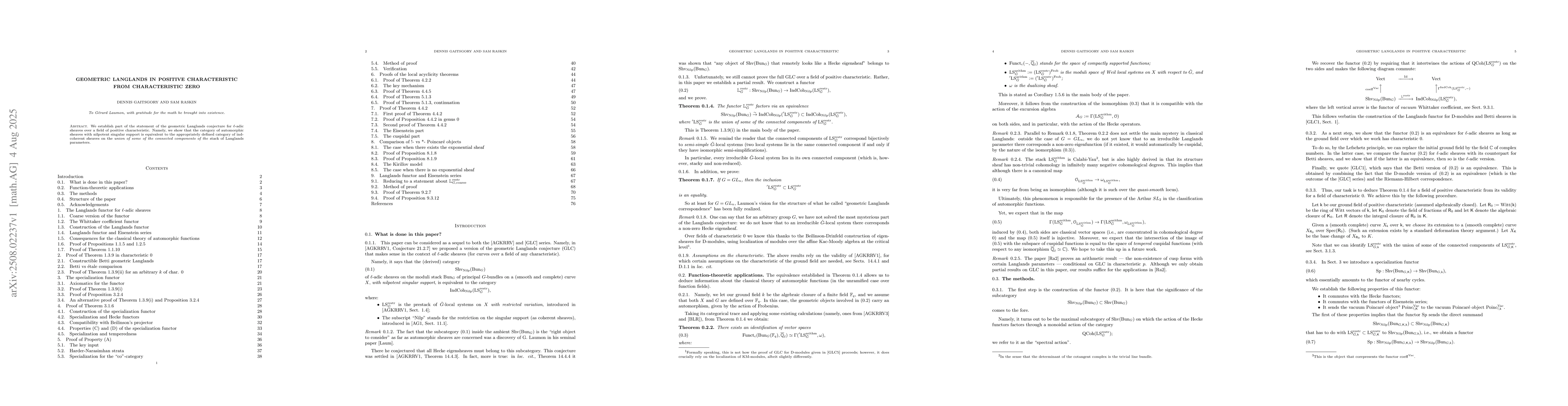 We establish part of the statement of the geometric Langlands conjecture for l-adic sheaves over a field of positive characteristic. Namely, we show that the category of automorphic sheaves with nilpotent singular support is equivalent to the appropriately defined category of ind-coherent sheaves on the union of some of the connected components of the stack of Langlands parameters.