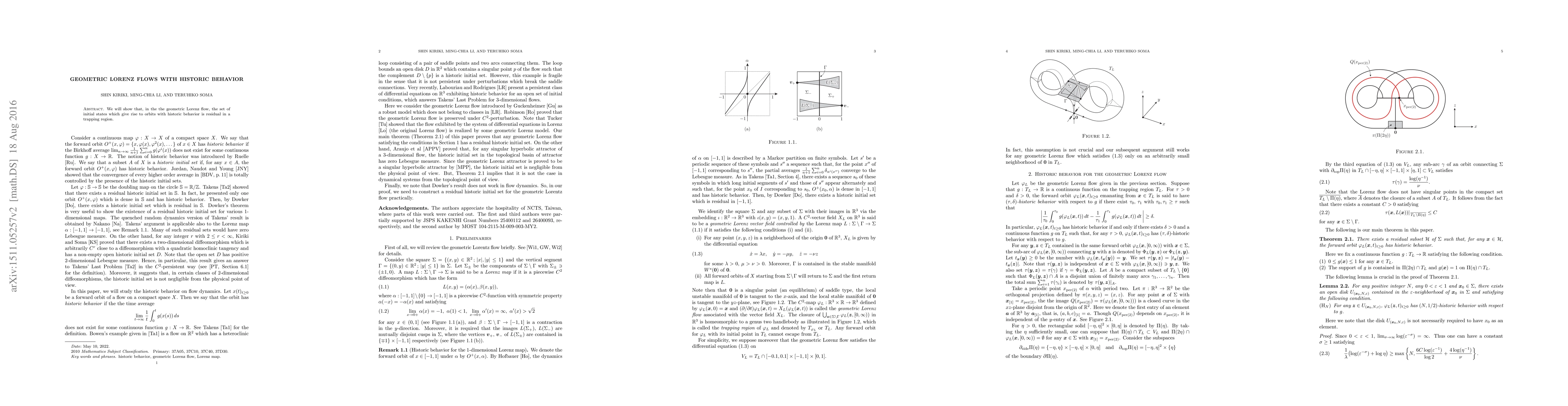 Summary: This paper demonstrates that in the geometric Lorenz flow, initial states leading to orbits with historic behavior form a residual set within a trapping region. The study highlights the complexity and rarity of such behavior in the flow dynamics.