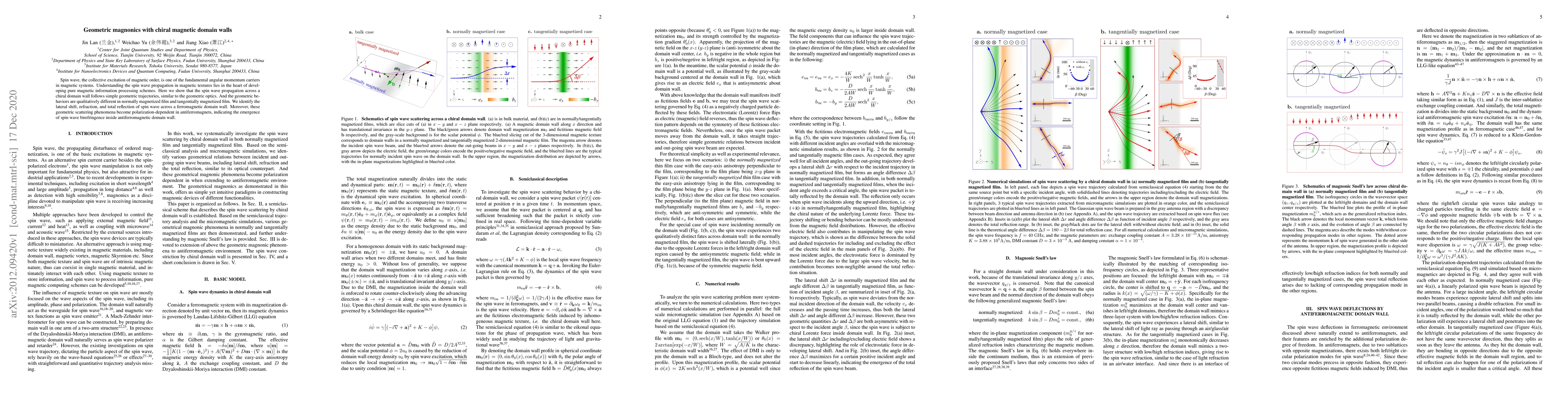 This research demonstrates that spin wave propagation across chiral magnetic domain walls follows geometric optical principles, including lateral shift, refraction, and total reflection, with significant differences between normally and tangentially magnetized films. Additionally, it reveals polarization-dependent geometric scattering phenomena in antiferromagnets, indicating spin wave birefringence.