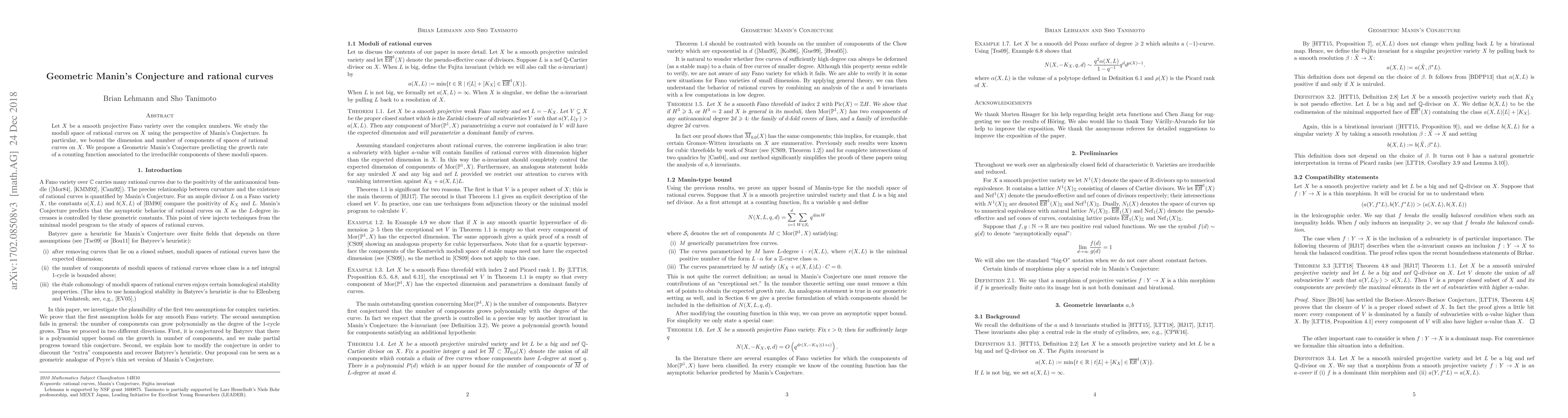 Let $X$ be a smooth projective Fano variety over the complex numbers. We study the moduli spaces of rational curves on $X$ using the perspective of Manin's Conjecture. In particular, we bound the dimension and number of components of spaces of rational curves on $X$. We propose a Geometric Manin's Conjecture predicting the growth rate of a counting function associated to the irreducible components of these moduli spaces.