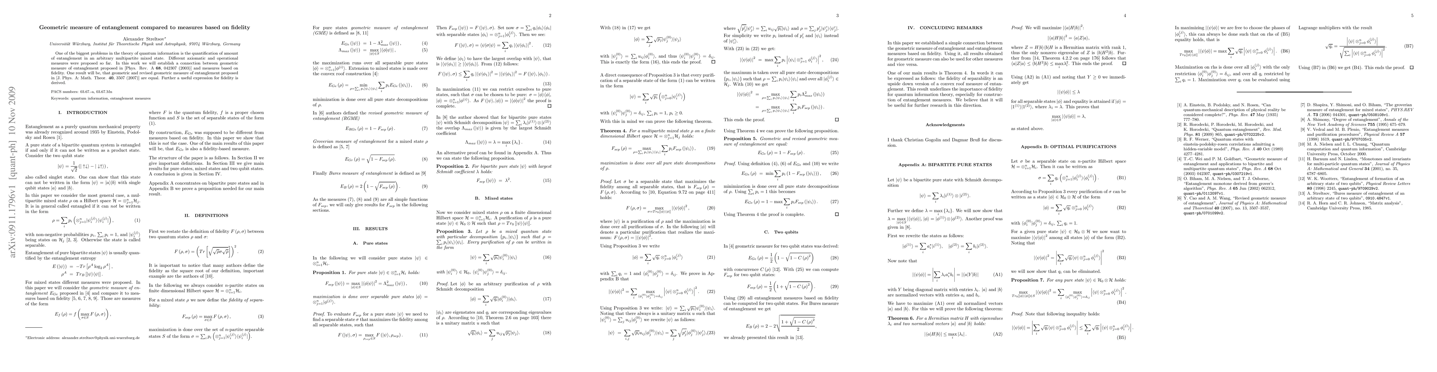 This paper establishes a connection between the geometric measure of entanglement and fidelity-based measures, showing that the geometric and revised geometric measures are equivalent. It also derives a useful expression for fidelity in the context of entanglement quantification.