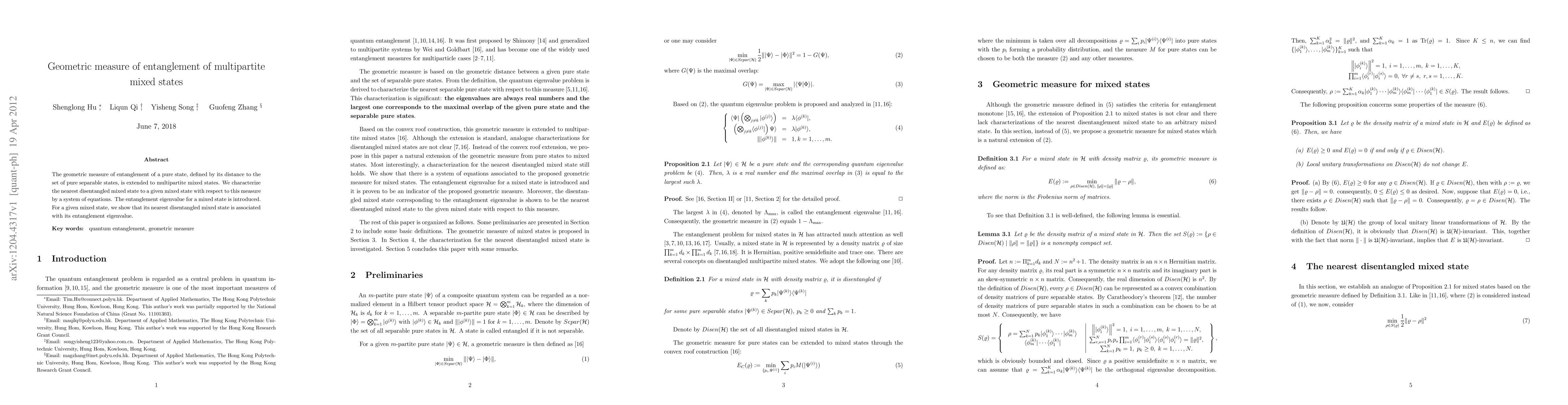 This paper extends the geometric measure of entanglement from pure to multipartite mixed quantum states, introducing a system of equations to characterize the nearest disentangled mixed state. It also defines an entanglement eigenvalue for mixed states, linking it to the nearest disentangled state.