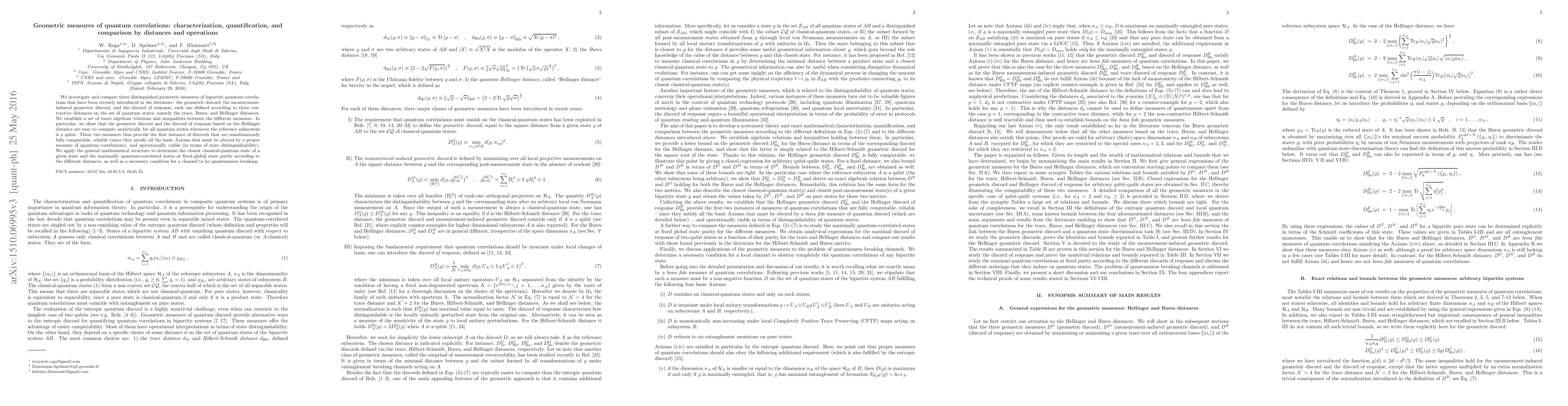 This paper explores and compares three geometric measures of quantum correlations—geometric discord, measurement-induced discord, and discord of response—using trace, Bures, and Hellinger distances. It establishes algebraic relations between these measures and highlights that geometric discord and discord of response based on the Hellinger distance are fully computable, reliable, and operationally viable for qubit subsystems.