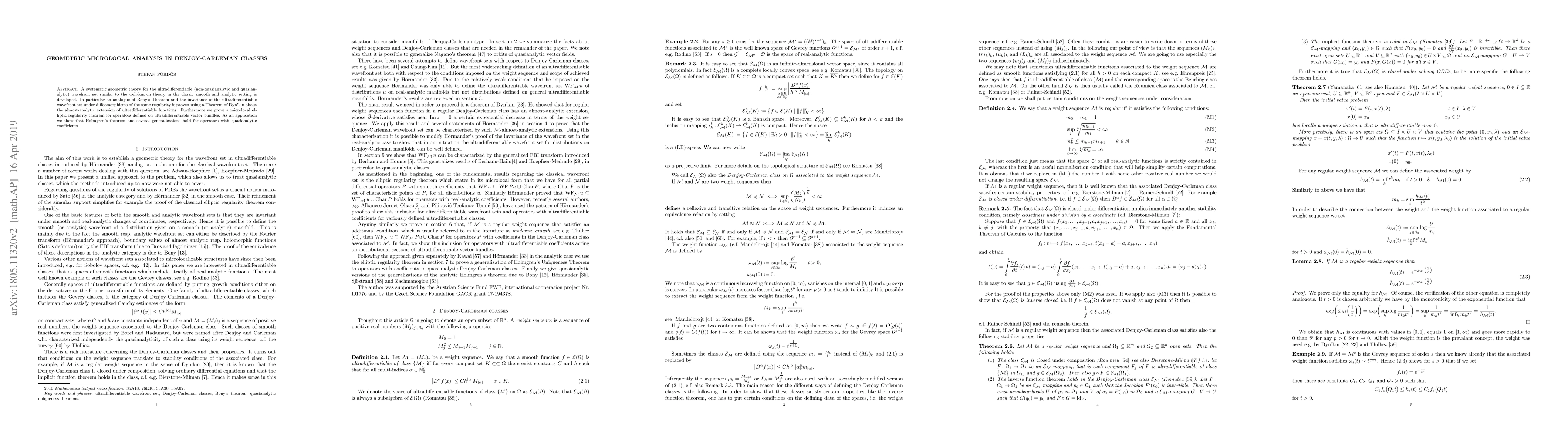 This paper develops a geometric microlocal analysis framework for ultradifferentiable functions in Denjoy-Carleman classes, proving analogues of Bony's Theorem and the invariance of the wavefront set under diffeomorphisms. It also establishes a microlocal elliptic regularity theorem for operators on ultradifferentiable vector bundles.