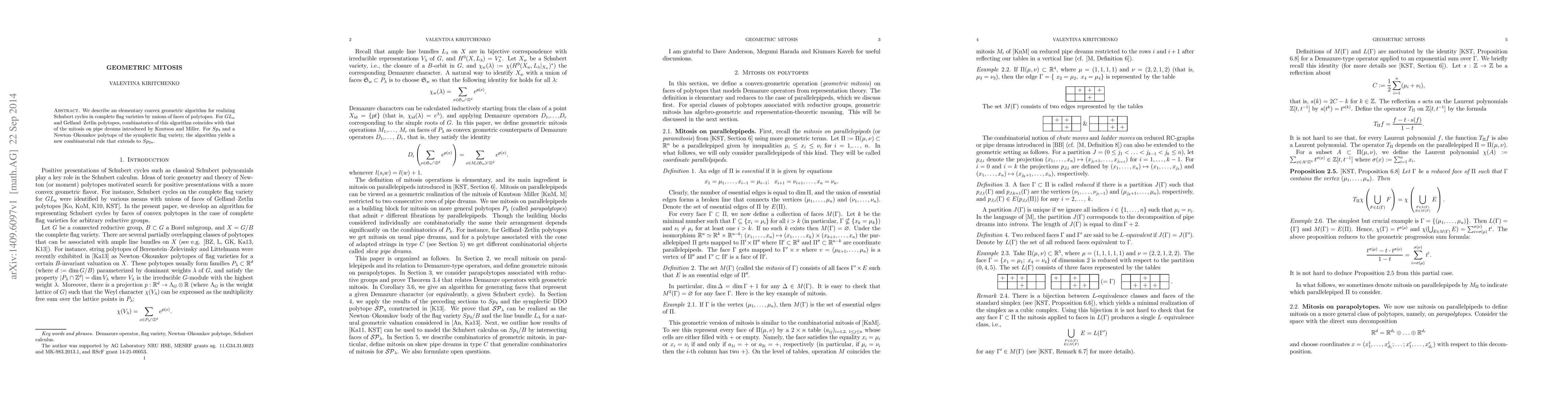We describe an elementary convex geometric algorithm for realizing Schubert cycles in complete flag varieties by unions of faces of polytopes. For GL_n and Gelfand--Zetlin polytopes, combinatorics of this algorithm coincides with that of the mitosis on pipe dreams introduced by Knutson and Miller. For Sp_4 and a Newton--Okounkov polytope of the symplectic flag variety, the algorithm yields a new combinatorial rule that extends to Sp_{2n}.