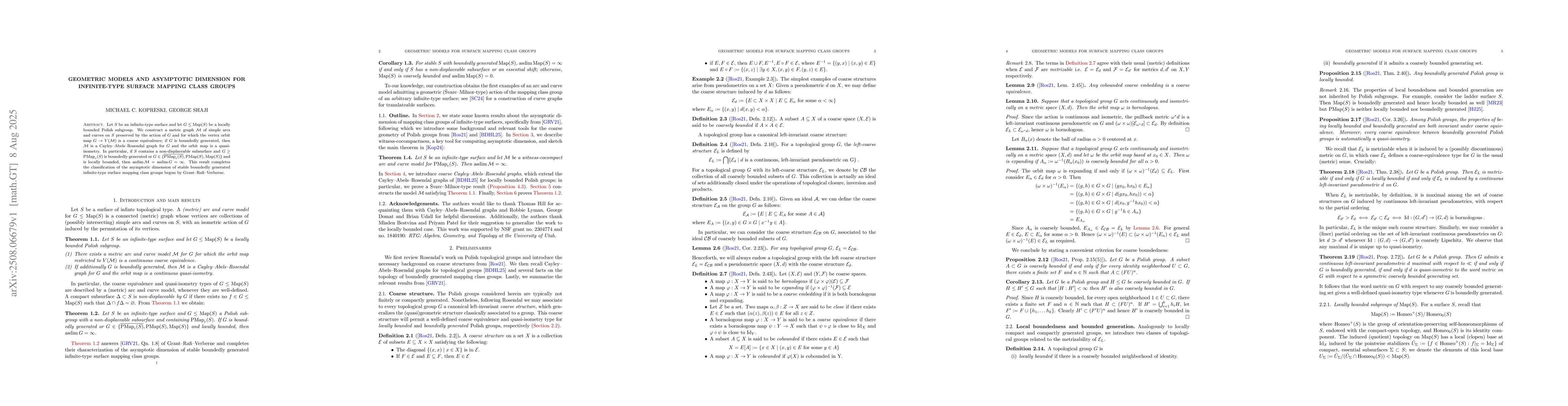 Let $S$ be an infinite-type surface and let $G \leq \operatorname{Map}(S)$ be a locally bounded Polish subgroup. We construct a metric graph $M$ of simple arcs and curves on $S$ preserved by the action of $G$ and for which the vertex orbit map $G \to V(M)$ is a coarse equivalence; if $G$ is boundedly generated, then $M$ is a Cayley--Abels--Rosendal graph for $G$ and the orbit map is a quasi-isometry. In particular, if $S$ contains a non-displaceable subsurface and $G \geq \operatorname{PMap}_c(S)$ is boundedly generated or $G \in \{\overline{\operatorname{PMap}_c(S)}, \operatorname{PMap}(S), \operatorname{Map}(S) \}$ and is locally bounded, then $\operatorname{asdim} M = \operatorname{asdim} G = \infty$. This result completes the classification of the asymptotic dimension of stable boundedly generated infinite-type surface mapping class groups begun by Grant--Rafi--Verberne.