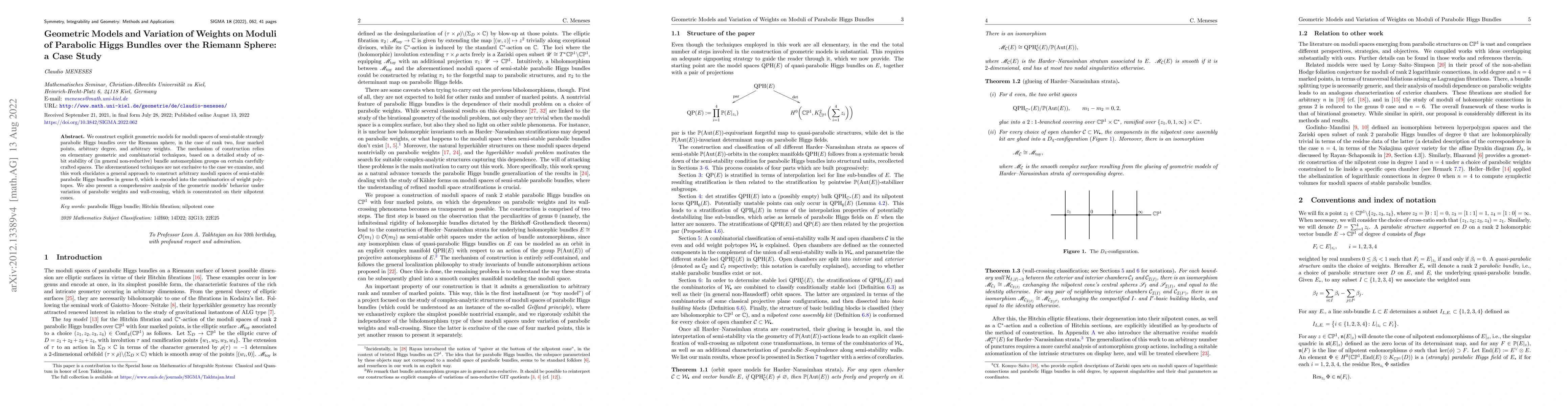 This paper constructs geometric models for moduli spaces of rank two semi-stable parabolic Higgs bundles over the Riemann sphere, employing combinatorial techniques. It explores the behavior of these models under weight variations and wall-crossing, emphasizing nilpotent cones.