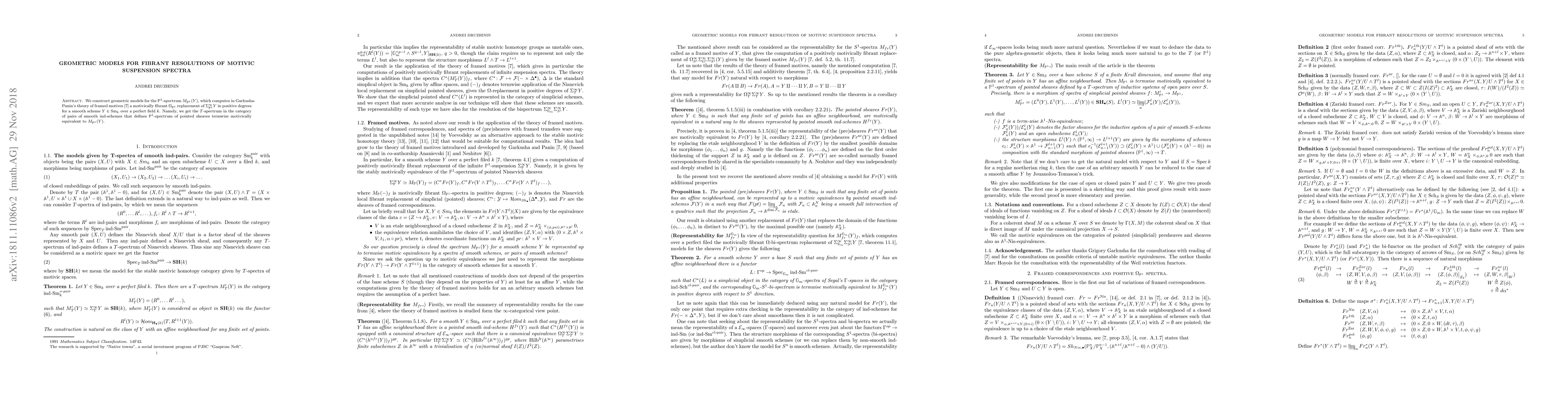 The paper constructs geometric models for the $\mathbb P^1$-spectrum $M_{\mathbb P^1}(Y)$ to compute a positively motivically fibrant $\Omega_{\mathbb P^1}$ replacement of $\Sigma_{\mathbb P^1}^\infty Y$ for smooth schemes over perfect fields, and obtains a $T$-spectrum in the category of pairs of smooth ind-schemes that defines the $\mathbb P^1$-spectrum of pointed sheaves termwise motivically equivalent to $M_{\mathbb P^1}(Y)$.