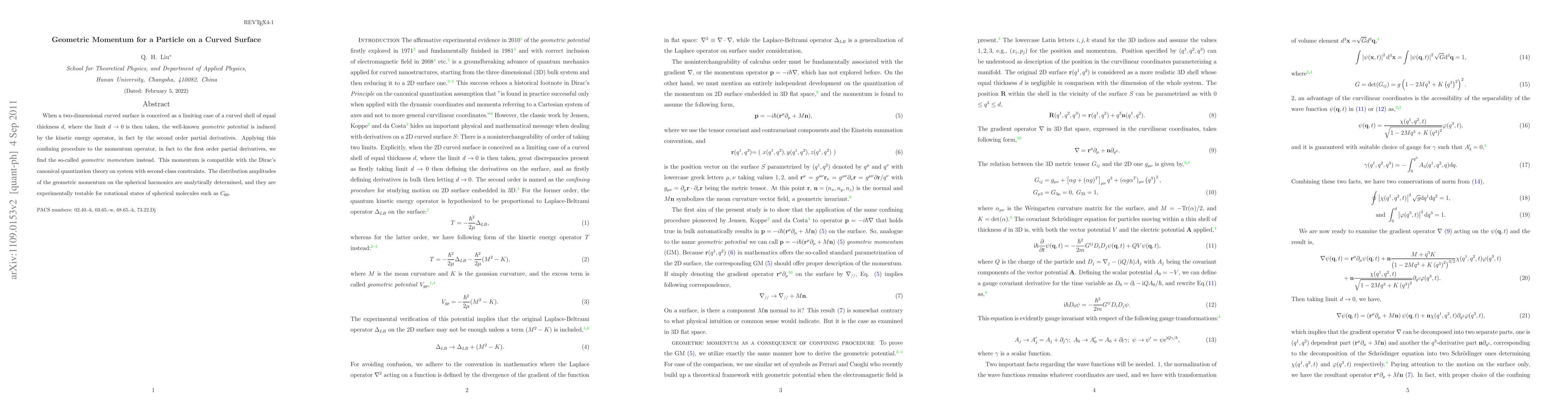 Researchers introduce the concept of geometric momentum for a particle on a curved surface, which is compatible with Dirac's canonical quantization theory and has experimental implications for studying rotational states in molecules like C60.