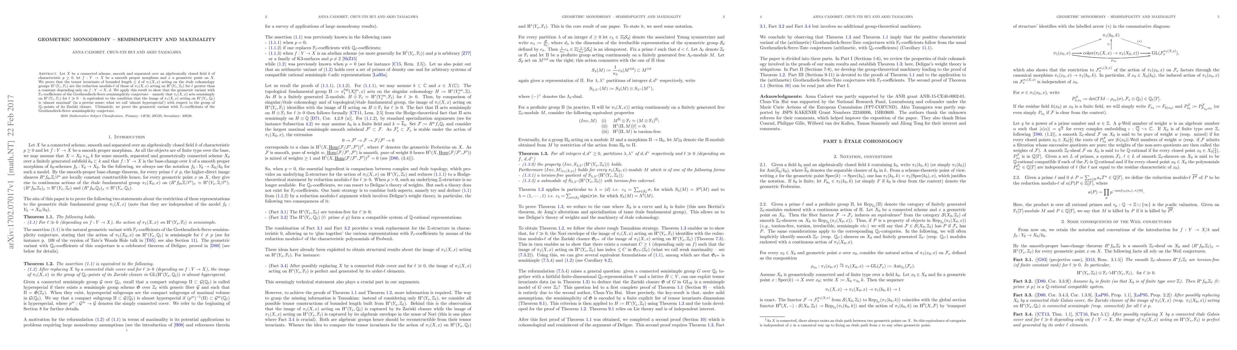 This research paper proves a geometric variant of the Grothendieck-Serre semisimplicity conjecture for connected schemes over an algebraically closed field, relating tensor invariants to the action on etale cohomology groups.