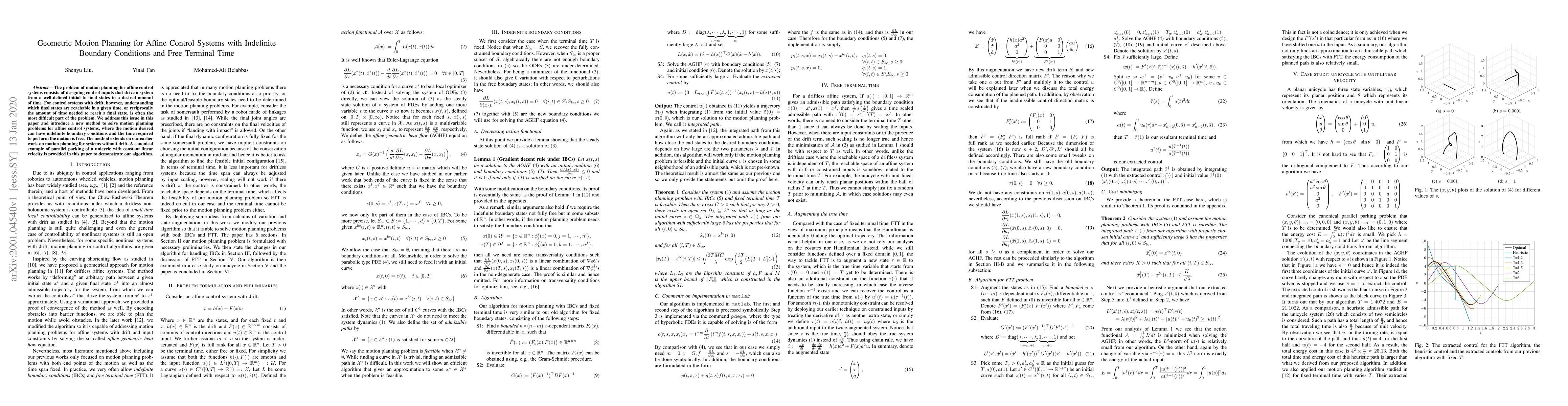 The problem of motion planning for affine control systems consists of designing control inputs that drive a system from a well-defined initial to final states in a desired amount of time. For control systems with drift, however, understanding which final states are reachable in a given time, or reciprocally the amount of time needed to reach a final state, is often the most difficult part of the problem. We address this issue in this paper and introduce a new method to solve motion planning problems for affine control systems, where the motion desired can have indefinite boundary conditions and the time required to perform the motion is free. The method extends on our earlier work on motion planning for systems without drift. A canonical example of parallel parking of a unicycle with constant linear velocity is provided in this paper to demonstrate our algorithm.