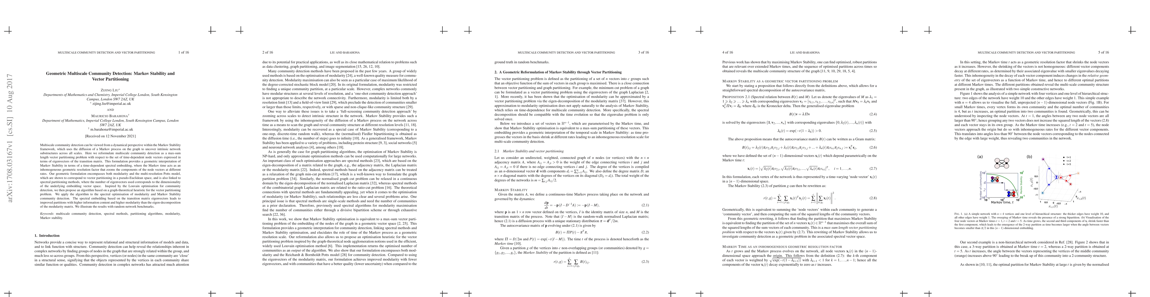 This paper reformulates multiscale community detection within the Markov Stability framework as a max-sum vector partitioning problem, providing a geometric interpretation of Markov Stability through time-dependent spectral embedding. The proposed algorithm, inspired by the Louvain method, optimizes modularity and Markov Stability, achieving improved partitions with higher information content compared to traditional methods.