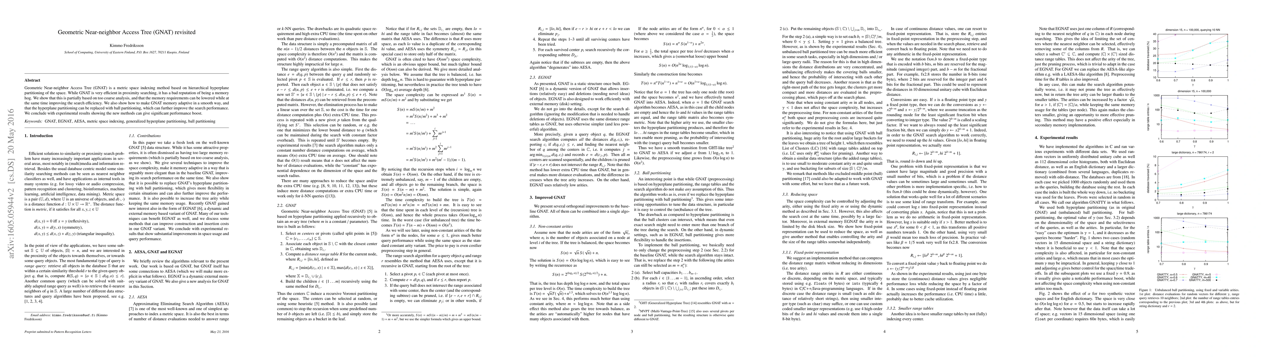 Geometric Near-neighbor Access Tree (GNAT) is a metric space indexing method based on hierarchical hyperplane partitioning of the space. While GNAT is very efficient in proximity searching, it has a bad reputation of being a memory hog. We show that this is partially based on too coarse analysis, and that the memory requirements can be lowered while at the same time improving the search efficiency. We also show how to make GNAT memory adaptive in a smooth way, and that the hyperplane partitioning can be replaced with ball partitioning, which can further improve the search performance. We conclude with experimental results showing the new methods can give significant performance boost.