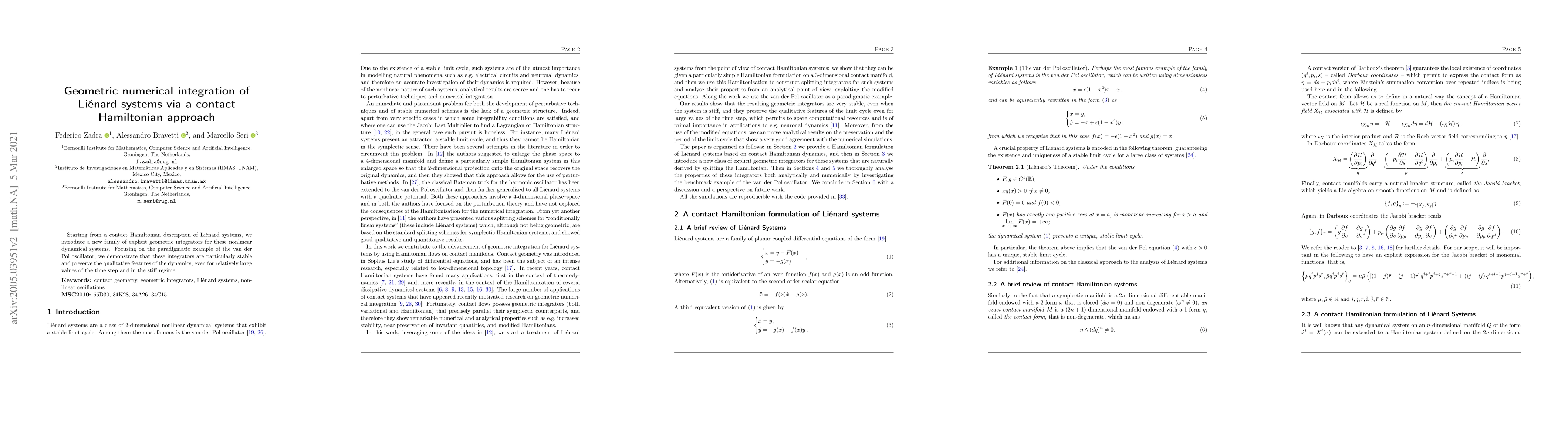 Researchers developed new geometric integrators for Li’enard systems using a contact Hamiltonian approach, showing improved stability and preservation of dynamics even at large time steps.