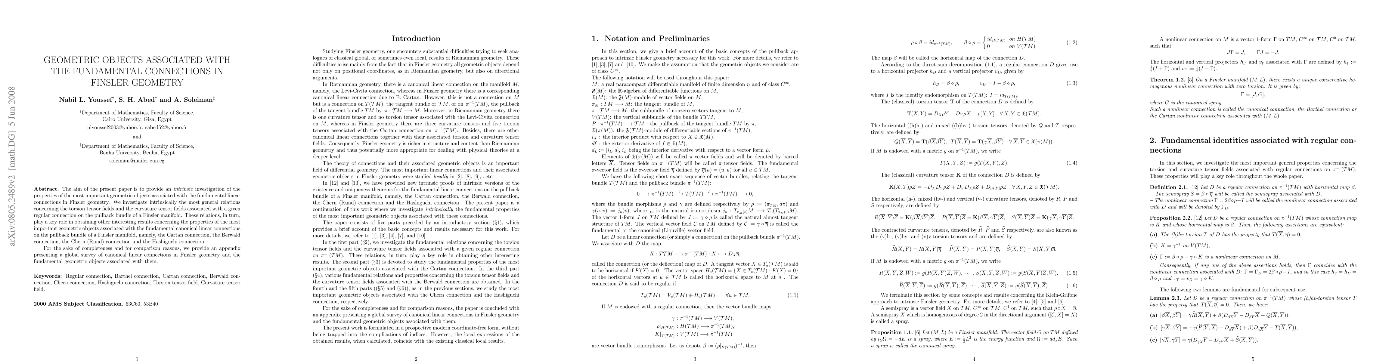This paper investigates intrinsic properties of geometric objects related to fundamental linear connections in Finsler geometry, focusing on torsion and curvature tensor fields. It also explores the relationships among these objects, contributing to understanding the Cartan, Berwald, Chern, and Hashiguchi connections in Finsler manifolds.