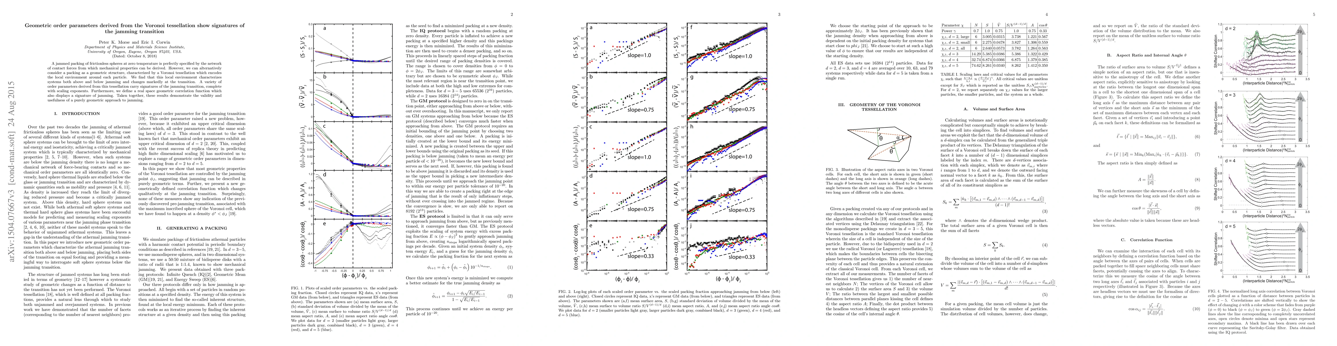 A jammed packing of frictionless spheres at zero temperature is perfectly specified by the network of contact forces from which mechanical properties can be derived. However, we can alternatively consider a packing as a geometric structure, characterized by a Voronoi tessellation which encodes the local environment around each particle. We find that this local environment characterizes systems both above and below jamming and changes markedly at the transition. A variety of order parameters derived from this tessellation carry signatures of the jamming transition, complete with scaling exponents. Furthermore, we define a real space geometric correlation function which also displays a signature of jamming. Taken together, these results demonstrate the validity and usefulness of a purely geometric approach to jamming.