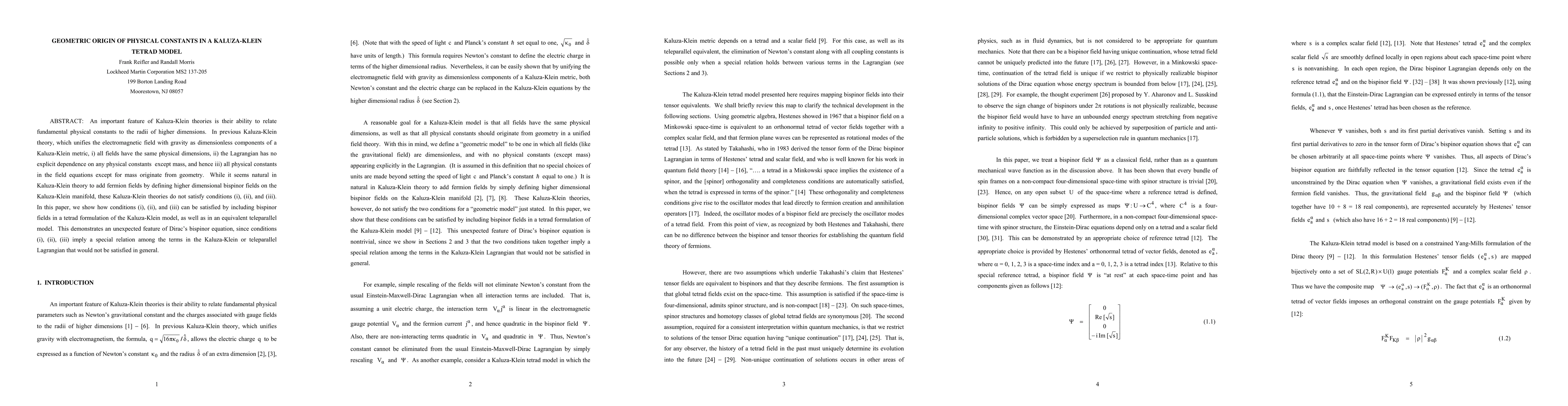 This paper demonstrates how fundamental physical constants in Kaluza-Klein theories can arise from the geometry of higher dimensions, specifically by incorporating bispinor fields within a tetrad or teleparallel framework, satisfying conditions that unify fields, eliminate explicit physical constants in the Lagrangian, and derive constants from geometry alone.