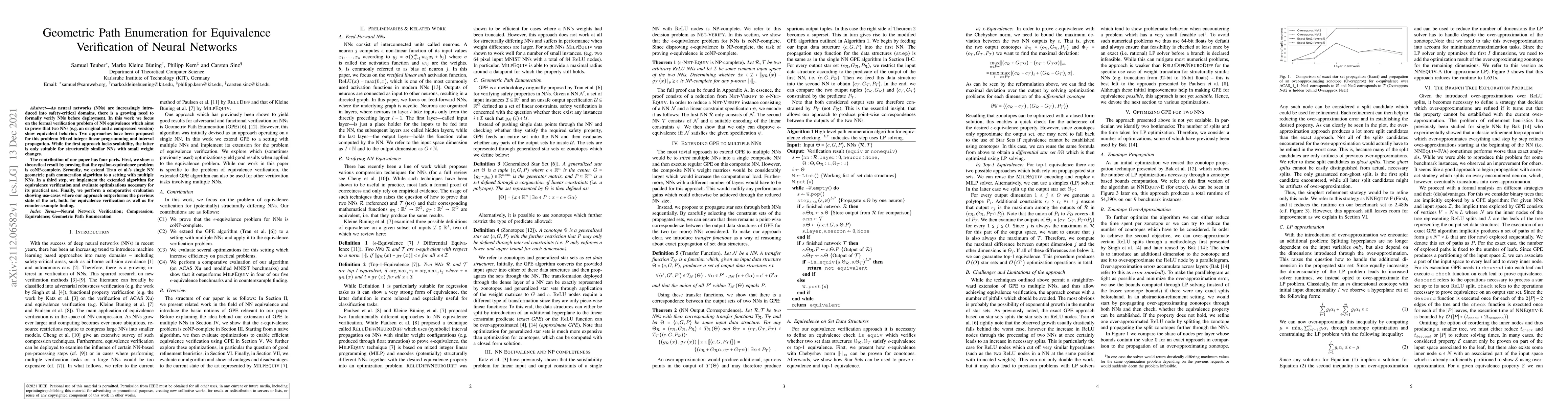 This paper presents a method for formally verifying the equivalence of neural networks using geometric path enumeration, improving upon existing approaches for scalability and practicality.