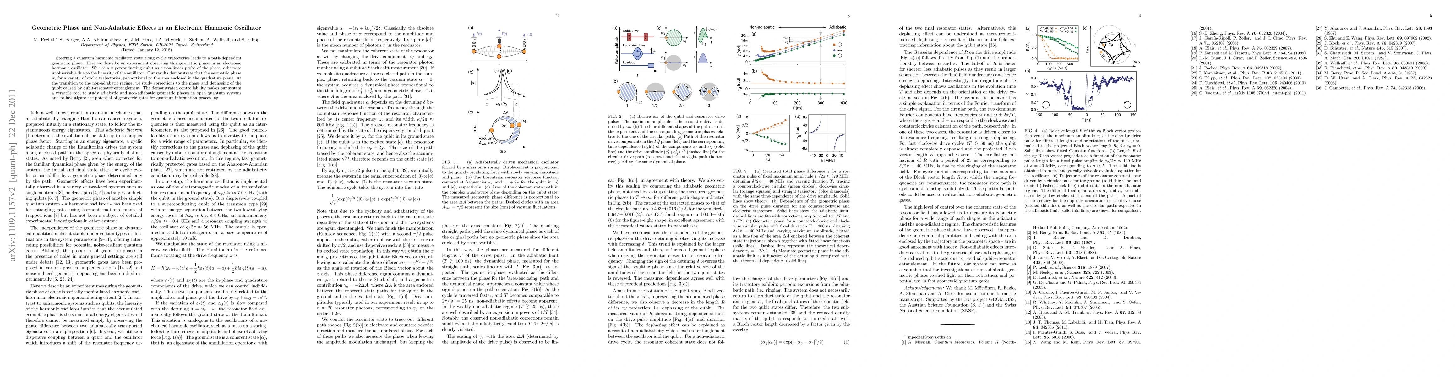 This paper experimentally observes the geometric phase in an electronic harmonic oscillator using a superconducting qubit, demonstrating its proportionality to the area enclosed in the quadrature plane. It also investigates non-adiabatic effects and qubit-resonator entanglement, showcasing the system's potential for studying quantum information processing.