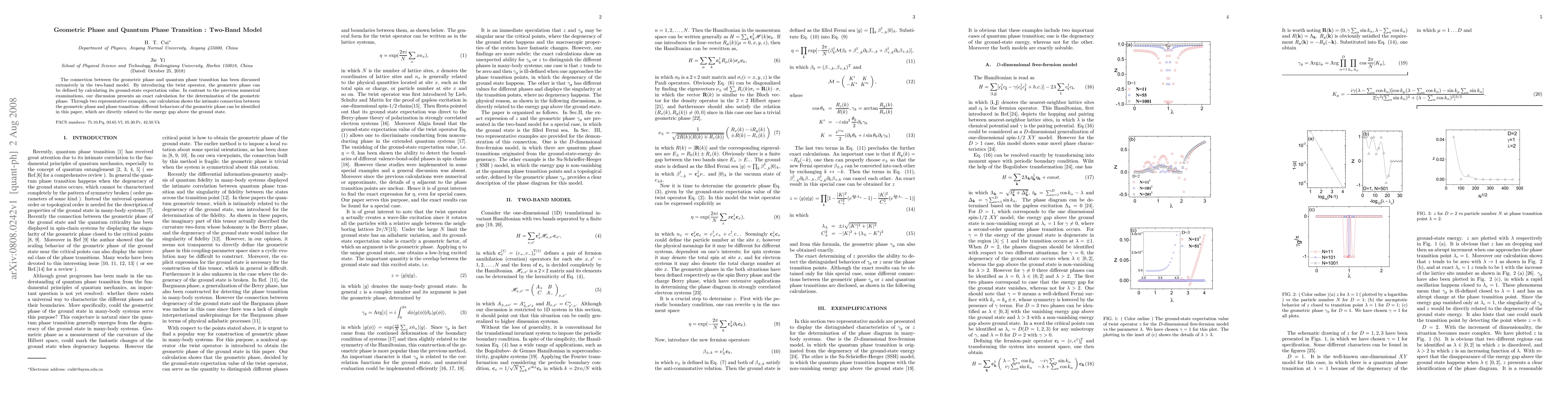 This research paper explores the connection between geometric phase and quantum phase transition in a two-band model through an exact calculation of the geometric phase, revealing its intimate relationship with energy gap behavior.