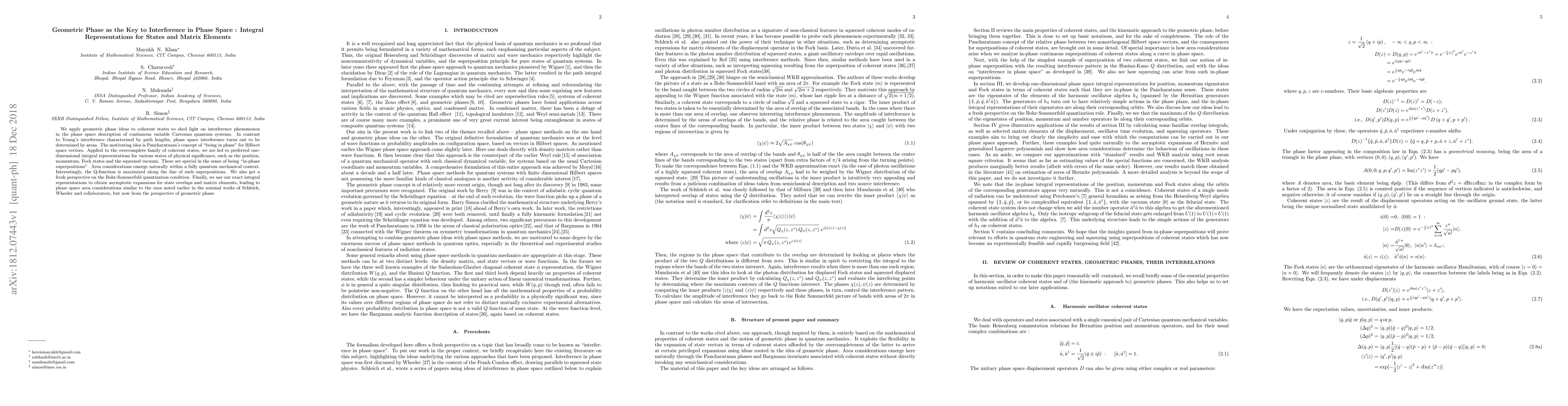 This paper explores the geometric phase's role in phase space interference for continuous variable quantum systems, revealing that interference is determined by areas rather than path lengths. It introduces integral representations for coherent states that highlight "in-phase superpositions" and connects these to the Bohr-Sommerfeld quantization condition.