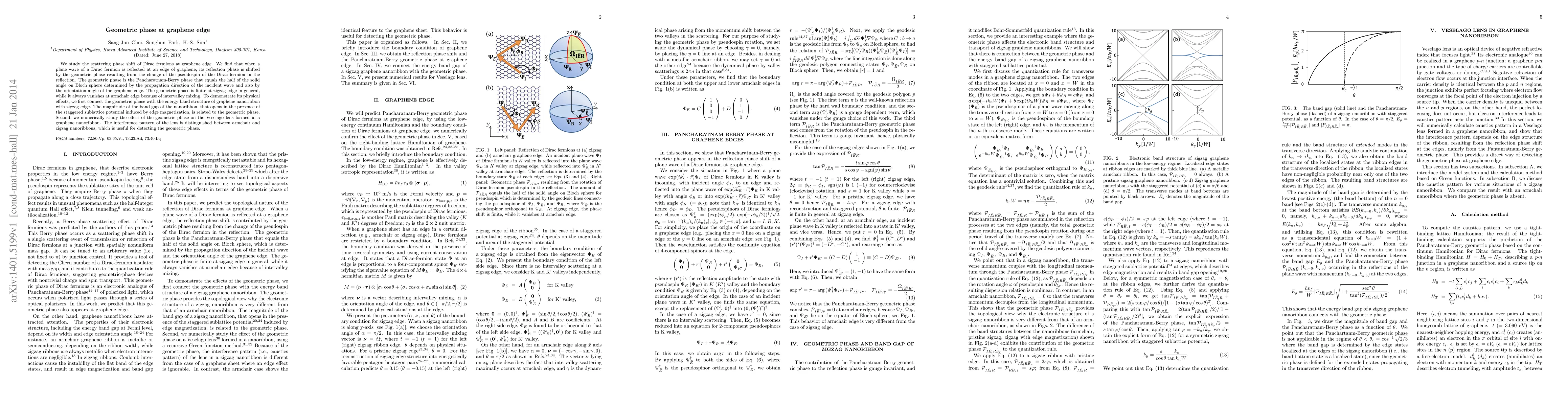 This paper explores the geometric phase shift in Dirac fermions scattering at graphene edges, showing that the phase shift arises from the pseudospin change, specifically the Pancharatnam-Berry phase. The geometric phase is finite for zigzag edges and absent for armchair edges due to intervalley mixing, influencing both the band gap in graphene nanoribbons and the interference pattern of Veselago lenses.