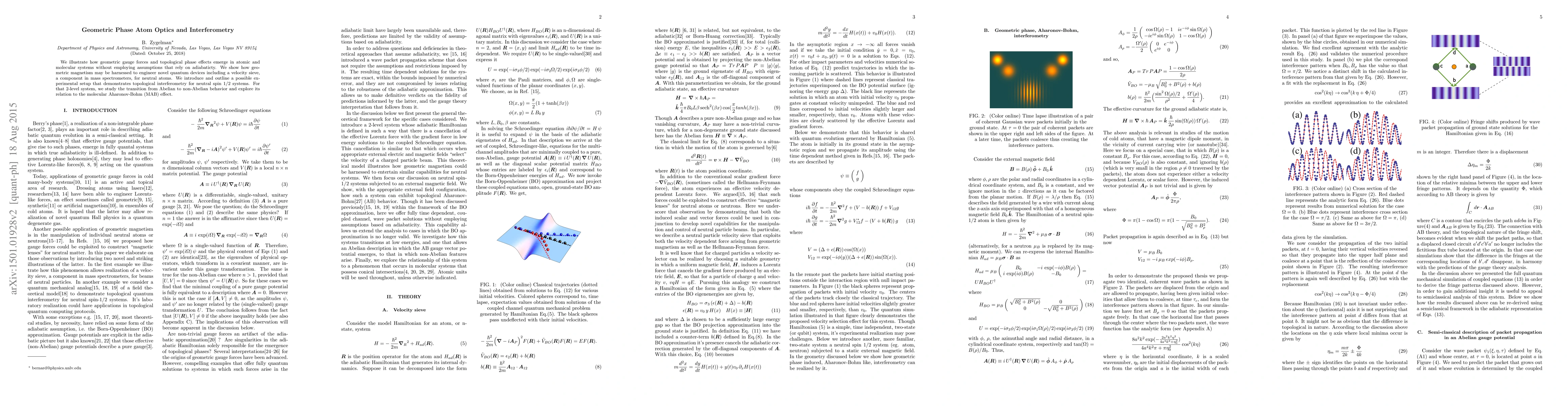 We illustrate how geometric gauge forces and topological phase effects emerge in quantum systems without employing assumptions that rely on adiabaticity. We show how geometric magnetism may be harnessed to engineer novel quantum devices including a velocity sieve, a component in mass spectrometers, for neutral atoms or neutrons. We outline a possible experimental setup that demonstrates topological interferometry for neutral spin 1/2 systems.