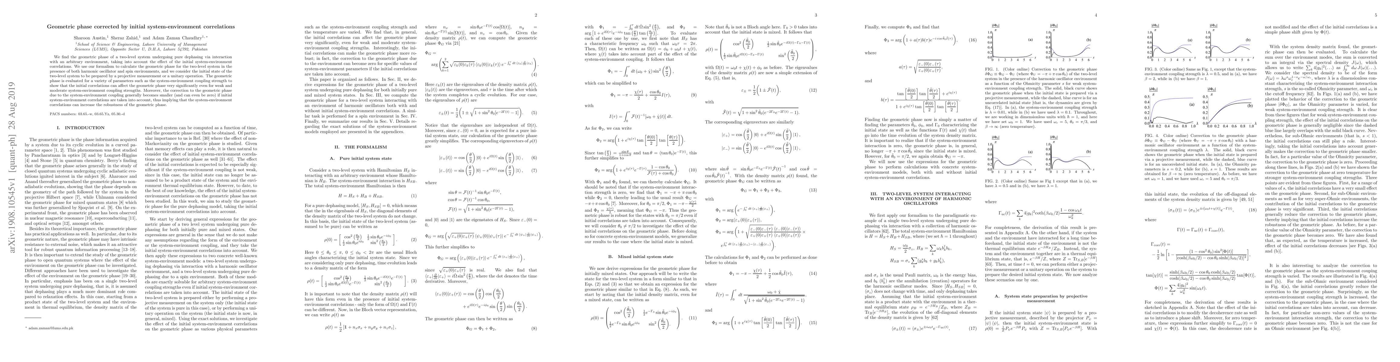 This paper investigates the geometric phase in a two-level system experiencing pure dephasing due to interaction with an environment, considering initial system-environment correlations. It demonstrates that these correlations can significantly affect the geometric phase, even for weak coupling, and can enhance the robustness of the phase by reducing the correction due to system-environment coupling.
