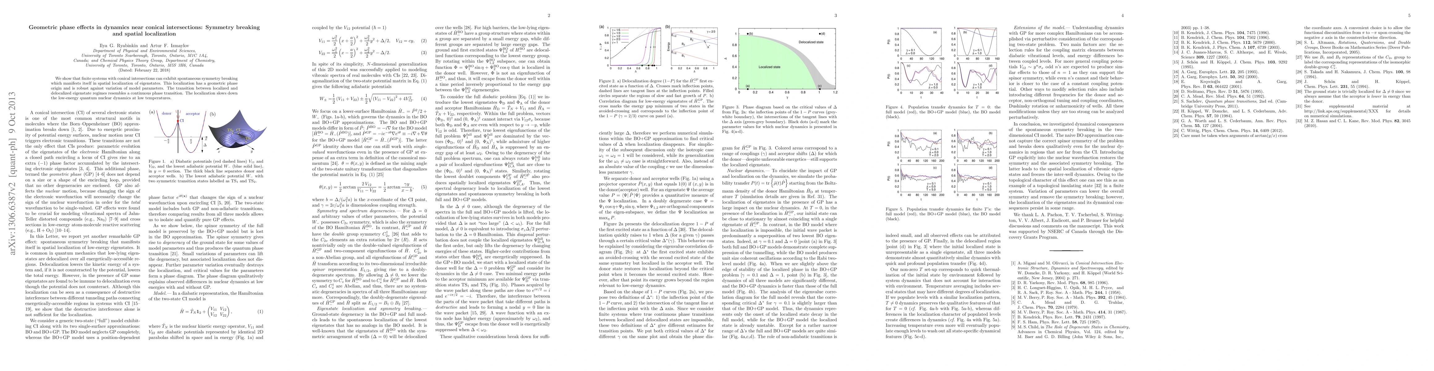 This paper demonstrates that systems with conical intersections exhibit spontaneous symmetry breaking leading to spatial localization of eigenstates, with a geometric phase origin. This localization significantly slows down low-energy quantum nuclear dynamics, resembling a continuous phase transition.