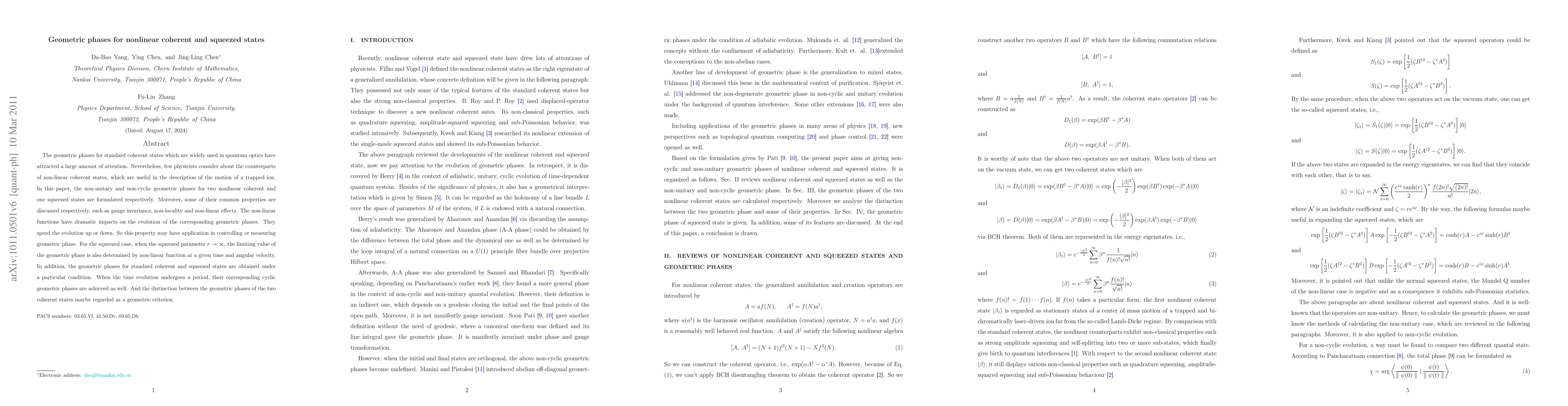 This paper explores geometric phases for nonlinear coherent and squeezed states, revealing non-unitary and non-cyclic geometric phases and their properties like gauge invariance. The study highlights the dramatic impact of non-linear functions on phase evolution and discusses applications in controlling geometric phases.