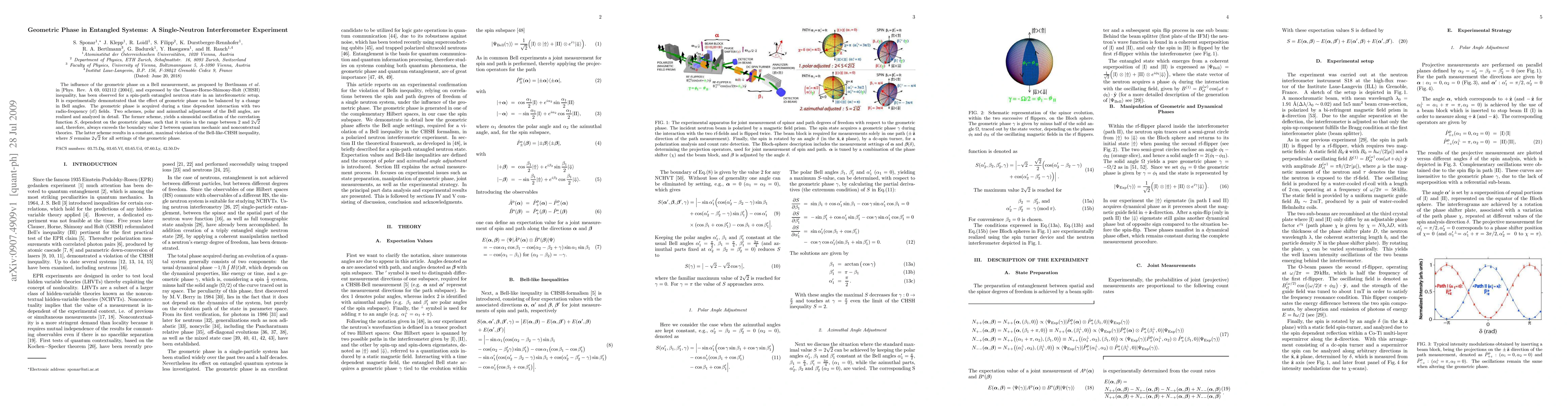Researchers demonstrate the influence of geometric phase on entangled neutron states in an interferometric setup and show that it can be balanced by adjusting Bell angles, leading to a constant maximal violation of the Bell inequality.