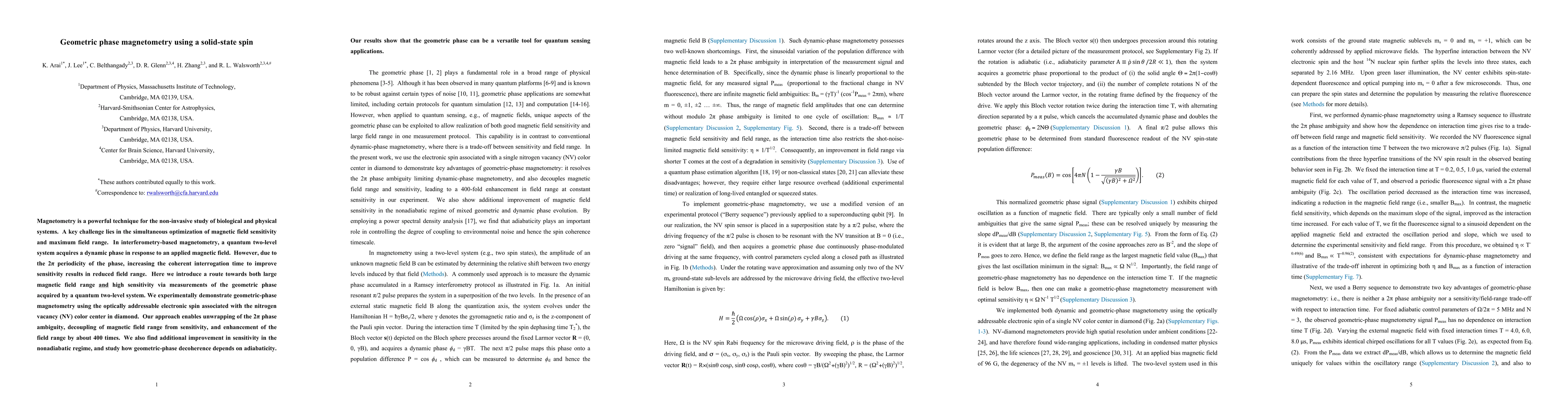 This paper presents a novel geometric-phase magnetometry technique using nitrogen vacancy (NV) centers in diamond to achieve both high magnetic field sensitivity and a significantly expanded field range, decoupling these parameters and enhancing the field range by about 400 times. The method leverages the geometric phase of a quantum two-level system to resolve phase ambiguity and improve sensing capabilities.