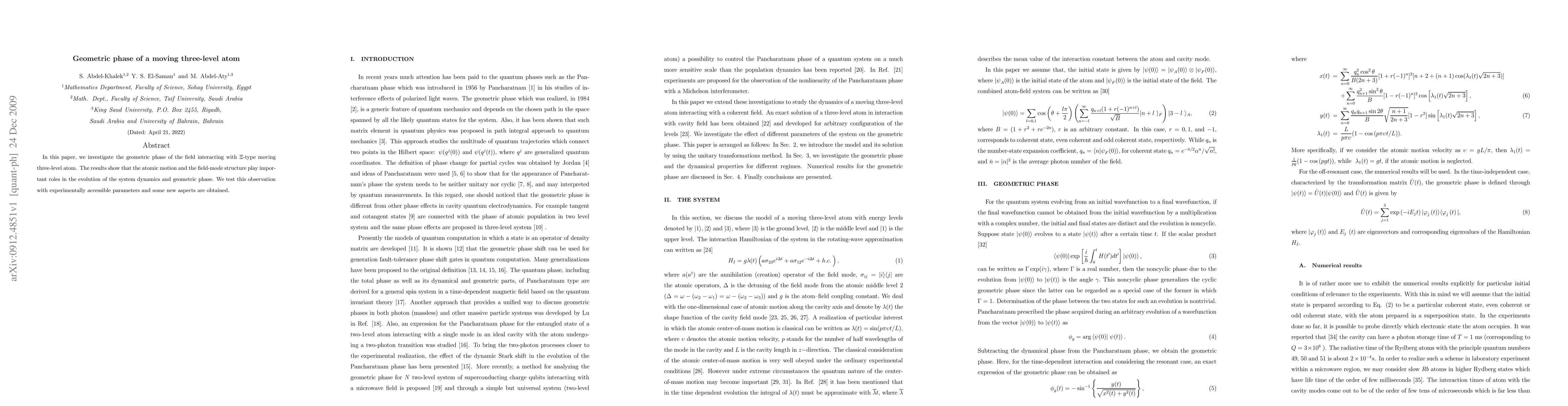 This paper explores the geometric phase in a moving three-level atom interacting with a field, revealing that atomic motion and field-mode structure significantly influence the system dynamics and geometric phase. Experimentally accessible parameters are used to validate these findings, uncovering new aspects of the phenomenon.