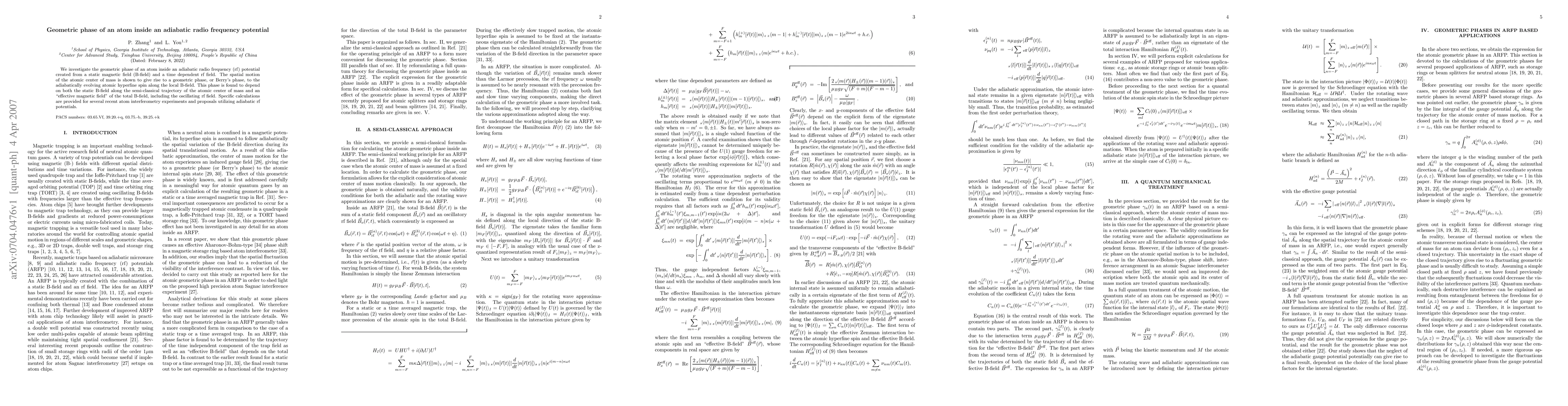 This paper explores the geometric phase, or Berry's phase, experienced by an atom's hyperfine spin within an adiabatic radio frequency potential influenced by a static magnetic field and a time-dependent rf field. The study reveals that the spatial motion of the atom's center of mass induces a phase dependent on both the static magnetic field and an effective magnetic field incorporating the oscillating rf field.