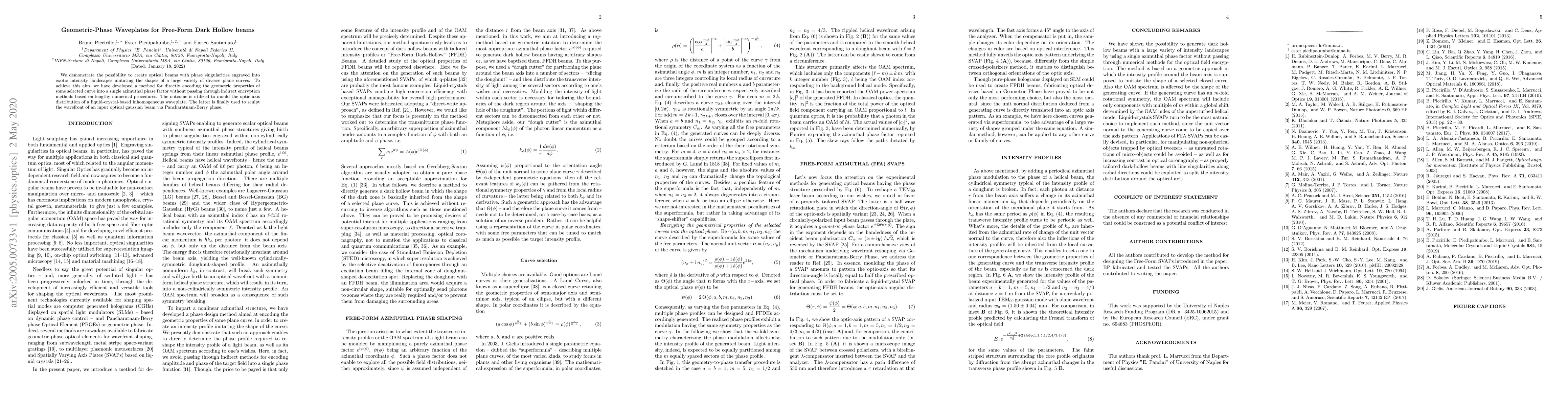 We demonstrate the possibility to create optical beams with phase singularities engraved into exotic intensity landscapes imitating the shapes of a large variety of diverse plane curves. To achieve this aim, we have developed a method for directly encoding the geometric properties of some selected curve into a single azimuthal phase factor without passing through indirect encryption methods based on lengthy numerical procedures. The outcome is utilized to mould the optic axis distribution of a liquid-crystal-based inhomogeneous waveplate. The latter is finally used to sculpt the wavefront of an input optical gaussian beam via Pancharatnam-Berry phase.