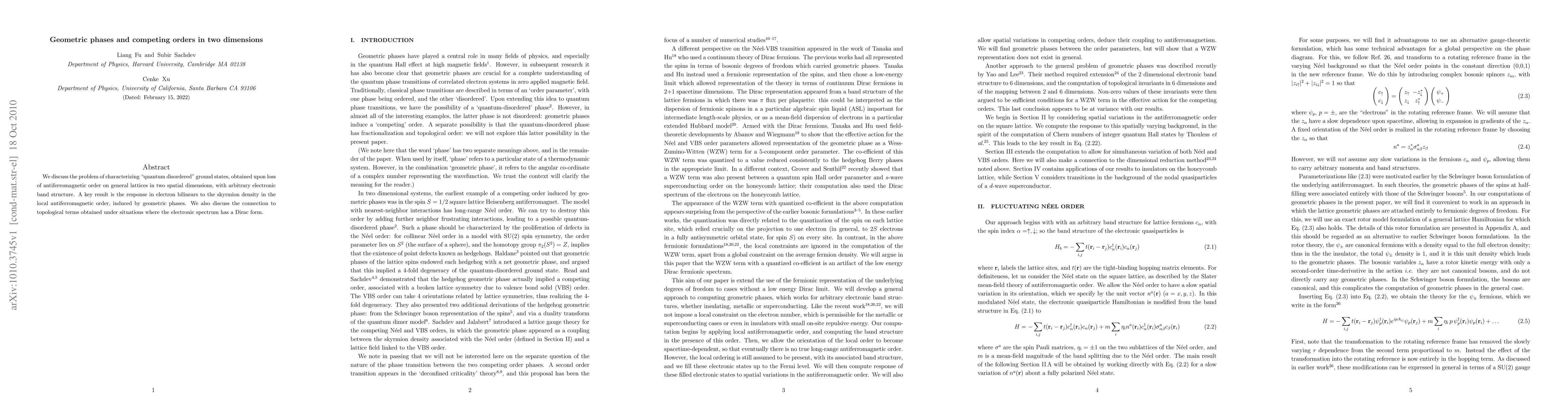 We discuss the problem of characterizing "quantum disordered" ground states, obtained upon loss of antiferromagnetic order on general lattices in two spatial dimensions, with arbitrary electronic band structure. A key result is the response in electron bilinears to the skyrmion density in the local antiferromagnetic order, induced by geometric phases. We also discuss the connection to topological terms obtained under situations where the electronic spectrum has a Dirac form.
