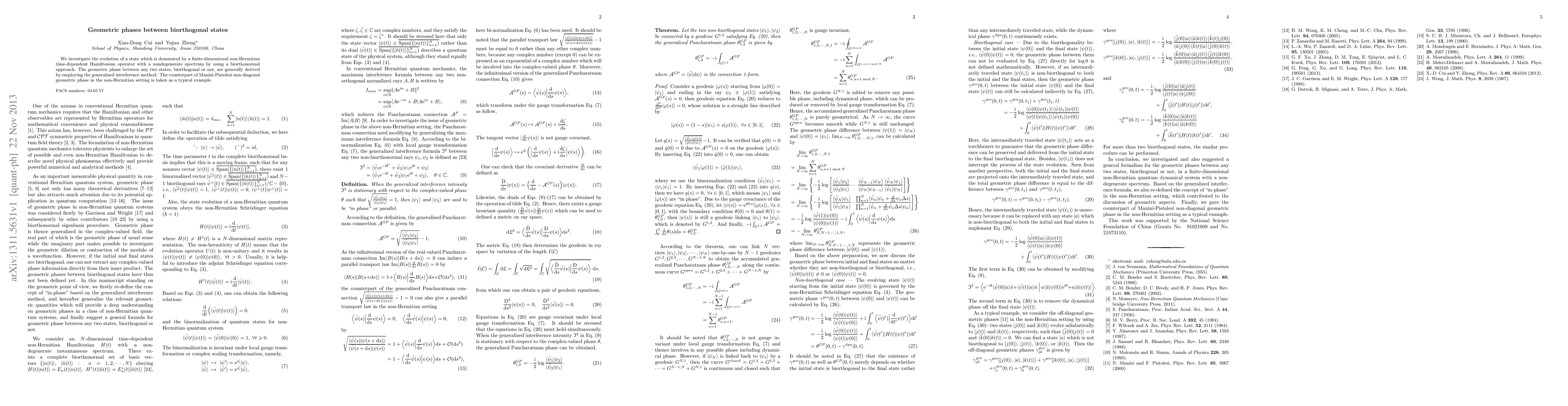 We investigate the evolution of a state which is dominated by a finite-dimensional non-Hermitian time-dependent Hamiltonian operator with a nondegenerate spectrum by using a biorthonormal approach. The geometric phase between any two states, biorthogonal or not, are generally derived by employing the generalized interference method. The counterpart of Manini-Pistolesi non-diagonal geometric phase in the non-Hermitian setting is taken as a typical example.