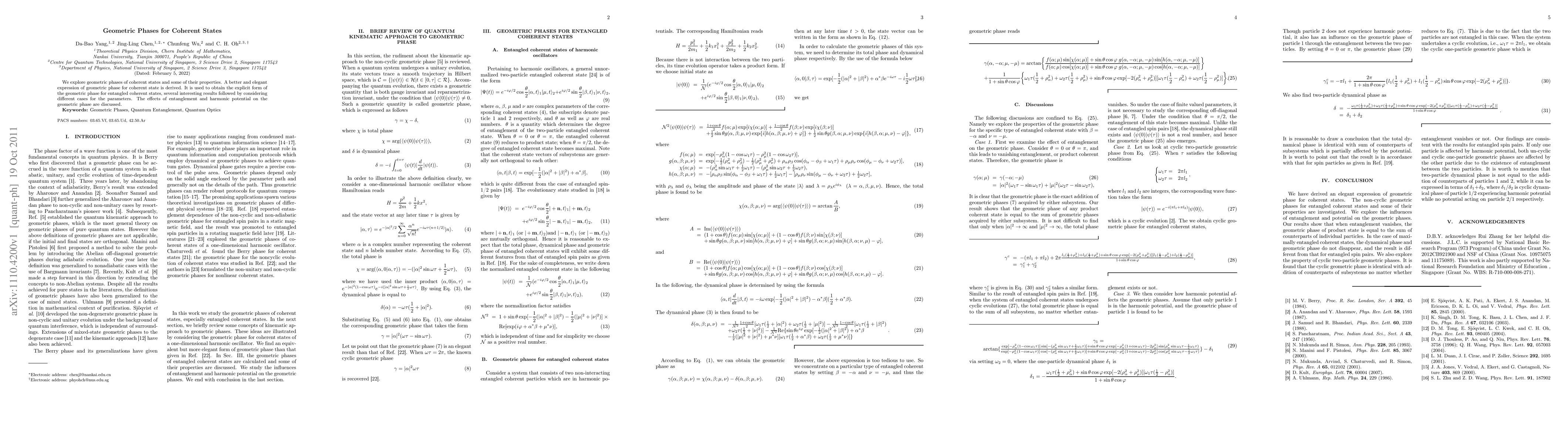 This paper derives a refined expression for the geometric phase of coherent states, applying it to entangled coherent states and examining the influence of entanglement and harmonic potential on the geometric phase, revealing several intriguing results.