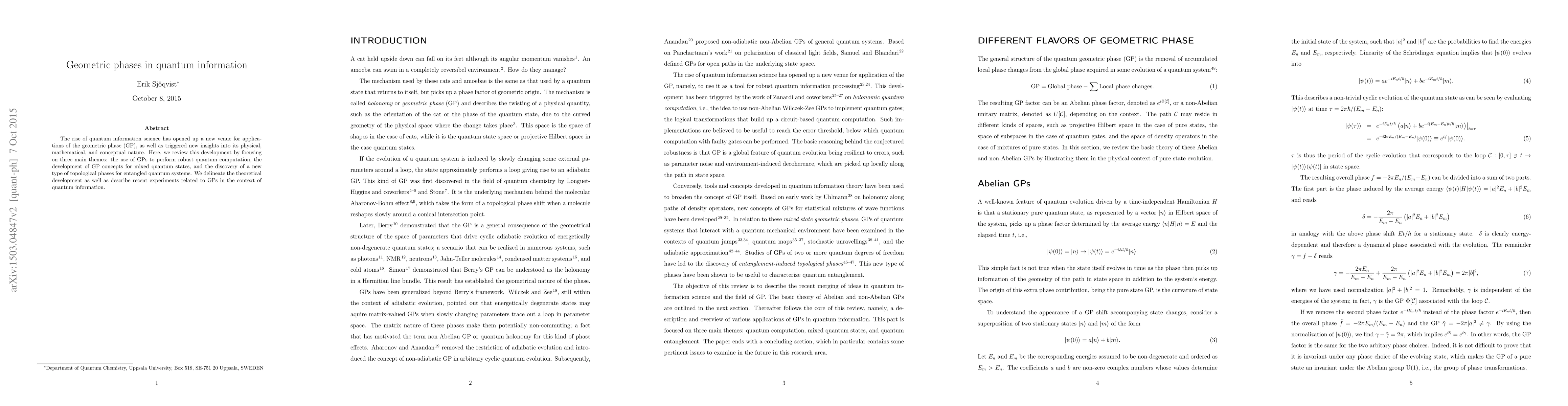 This paper reviews the role of geometric phases in quantum information science, exploring their use in robust computation, mixed states, and topological phases. It discusses recent experiments and theoretical developments that shed new light on the nature and applications of geometric phases in quantum systems.