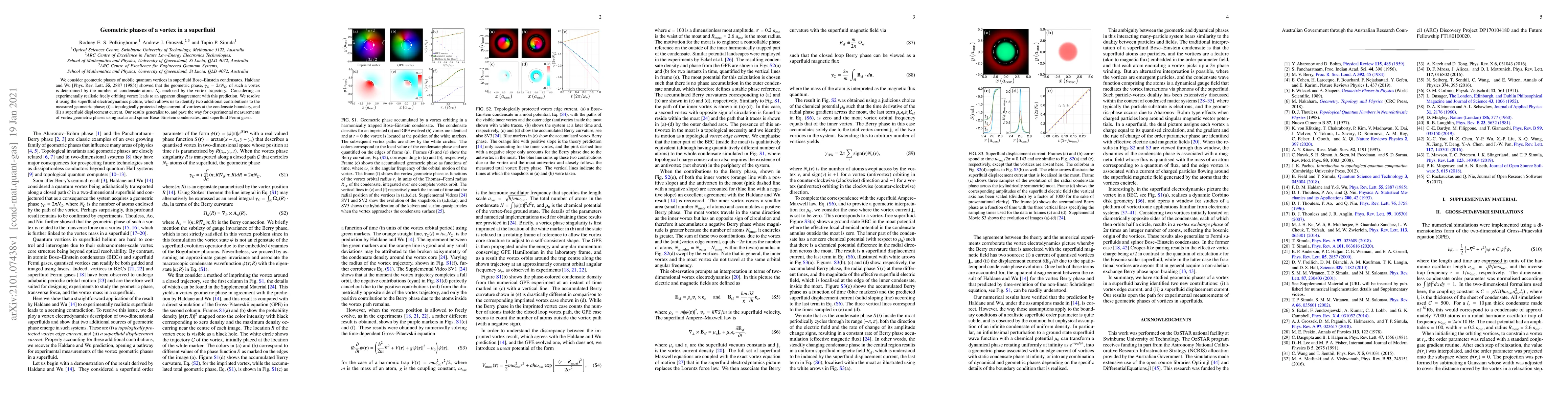 We consider geometric phases of mobile quantum vortices in superfluid Bose-Einstein condensates. Haldane and Wu [Phys. Rev. Lett. 55, 2887 (1985)] showed that the geometric phase, $\gamma_{\mathcal C}=2\pi N_{\mathcal C}$, of such a vortex is determined by the number of condensate atoms $N_{\mathcal C}$ enclosed by the vortex trajectory. Considering an experimentally realistic freely orbiting vortex leads to an apparent disagreement with this prediction. We resolve it using the superfluid electrodynamics picture, which allows us to identify two additional contributions to the measured geometric phase; (i) a topologically protected edge current of vortices at the condensate boundary, and (ii) a superfluid displacement current. Our results generalise to, and pave the way for experimental measurements of vortex geometric phases using scalar and spinor Bose--Einstein condensates, and superfluid Fermi gases.