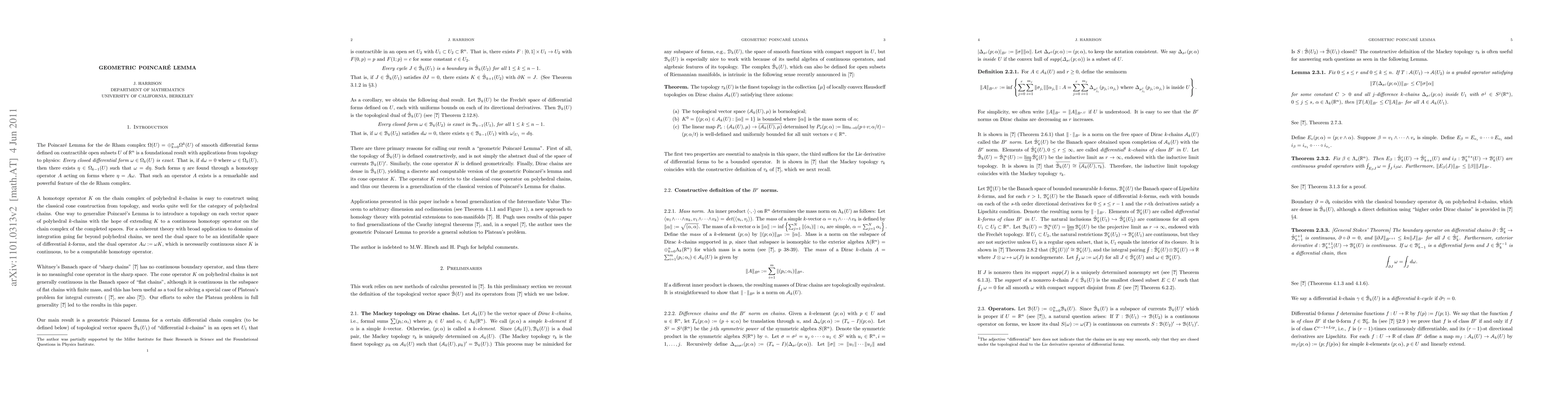 The paper establishes a geometric version of the Poincaré Lemma for differential chains, proving that every k-cycle with compact support in a contractible open subset of a smooth manifold is the boundary of a (k+1)-chain with compact support, with applications to generalizations of the Intermediate Value Theorem and Rolle's Theorem.