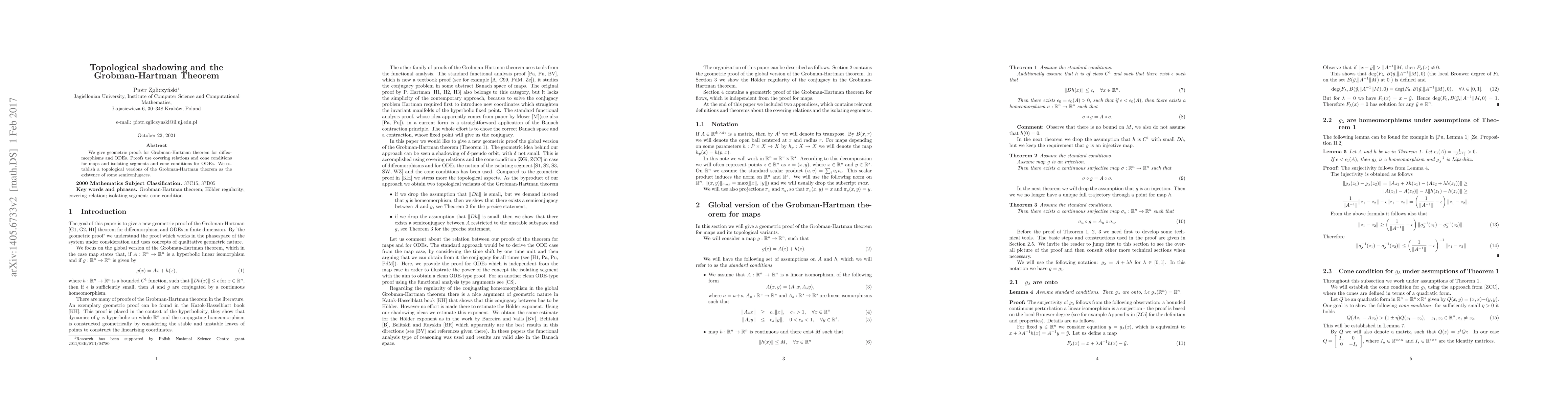 The paper provides geometric proofs for the Grobman-Hartman theorem in both diffeomorphisms and ODEs, utilizing covering relations and cone conditions, and introduces the H\"older condition for the conjugating homeomorphisms.