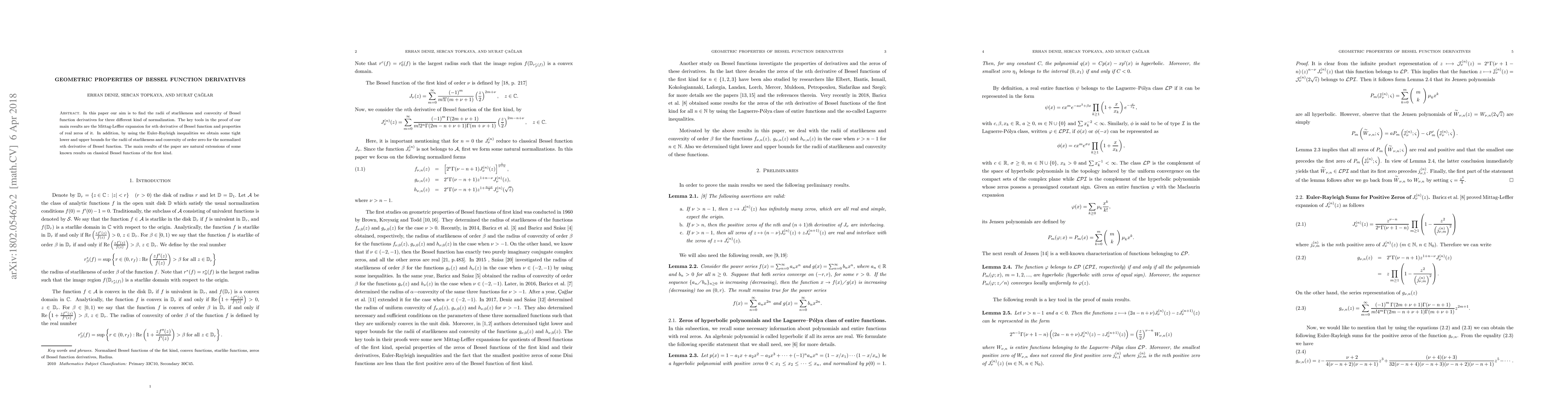 This paper investigates the radii of starlikeness and convexity for derivatives of Bessel functions under three normalizations, utilizing the Mittag-Leffler expansion and properties of real zeros. It also derives tight bounds using the Euler-Rayleigh inequalities, extending known results for classical Bessel functions.
