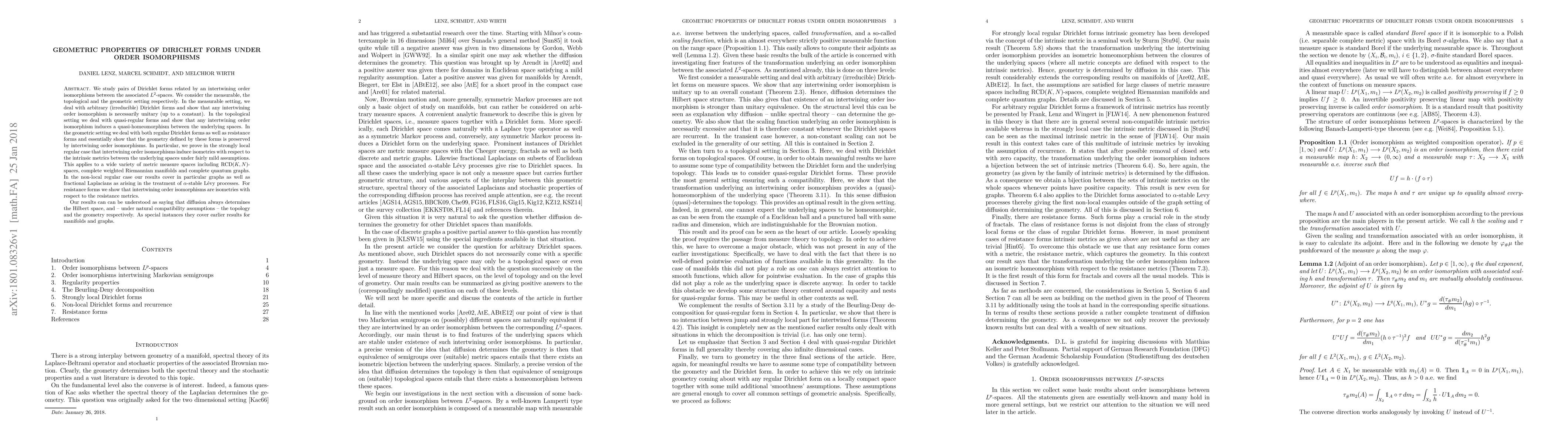 This paper explores how Dirichlet forms are preserved under intertwining order isomorphisms across measurable, topological, and geometric settings. It demonstrates that such isomorphisms maintain the Hilbert space structure, topology, and geometry, particularly proving isometries in intrinsic and resistance metrics for various metric measure spaces.