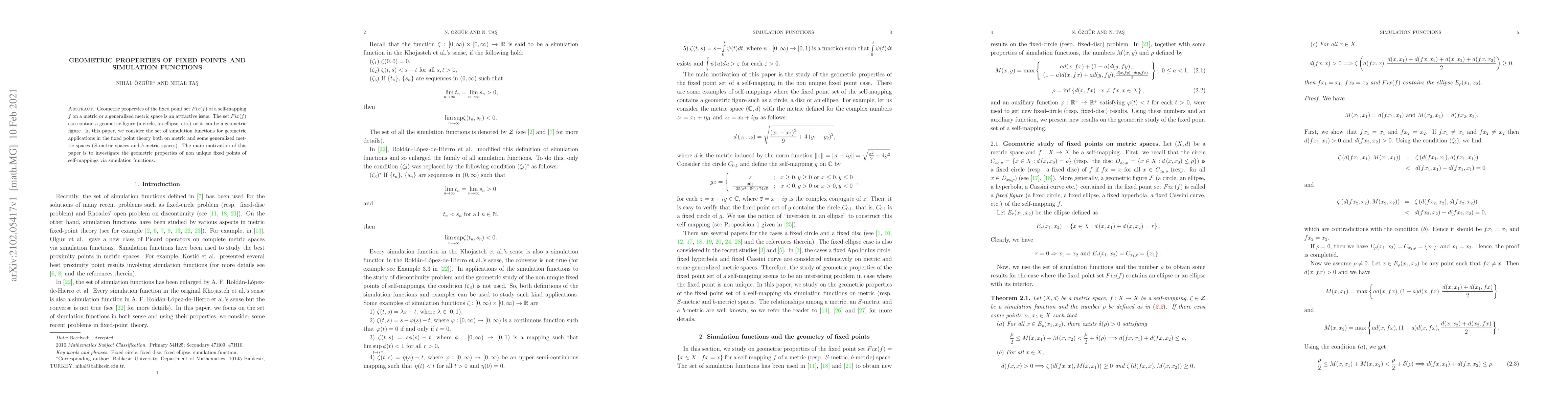 This paper explores the geometric properties of the fixed point set $Fix(f)$ in metric and generalized metric spaces, focusing on the role of simulation functions in understanding non-unique fixed points. It investigates geometric figures within the fixed point set and their implications in fixed point theory.