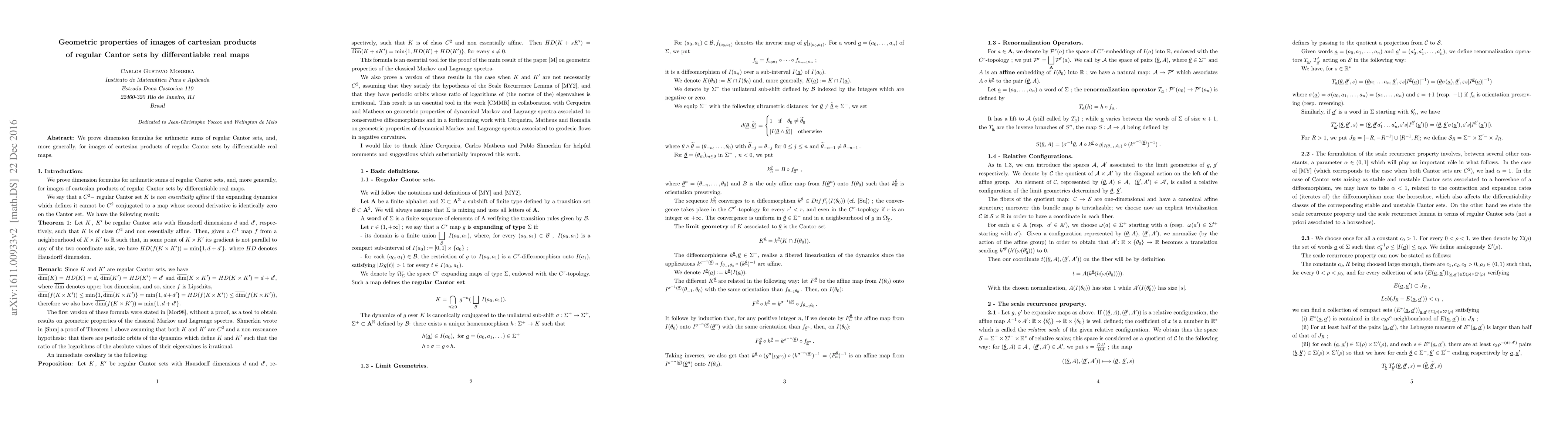 Summary: This paper establishes dimension formulas for arithmetic sums of regular Cantor sets and extends these results to the images of their Cartesian products under differentiable real maps. The findings provide insights into the geometric properties of such transformed sets.
