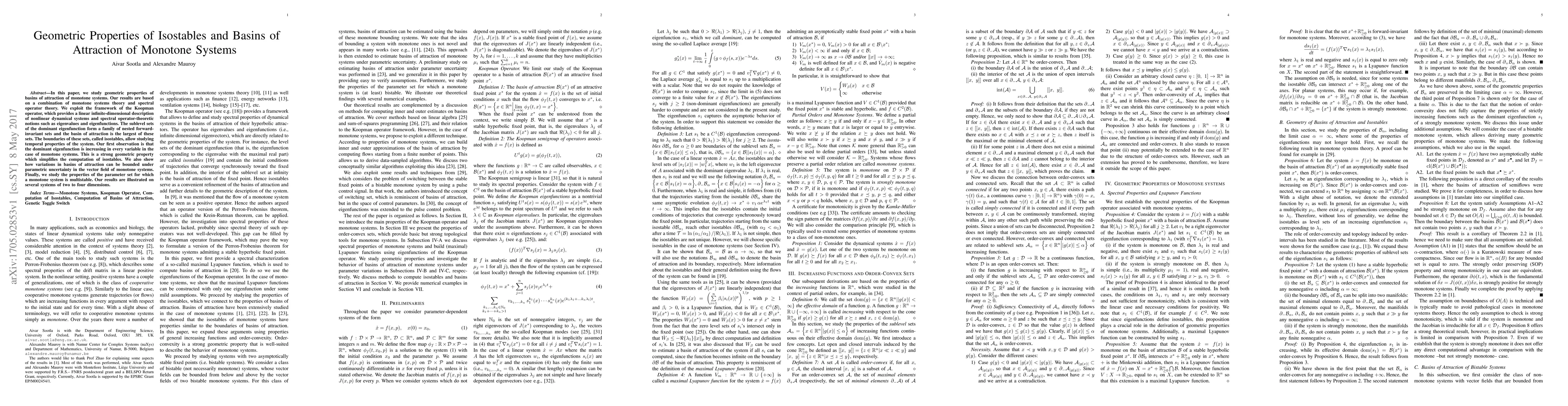 This paper investigates the geometric properties of basins of attraction in monotone systems using a combination of monotone systems theory and spectral operator theory. It demonstrates that the dominant eigenfunction is increasing in every variable, simplifying the computation of isostables, and explores how parametric uncertainty affects basin variations.