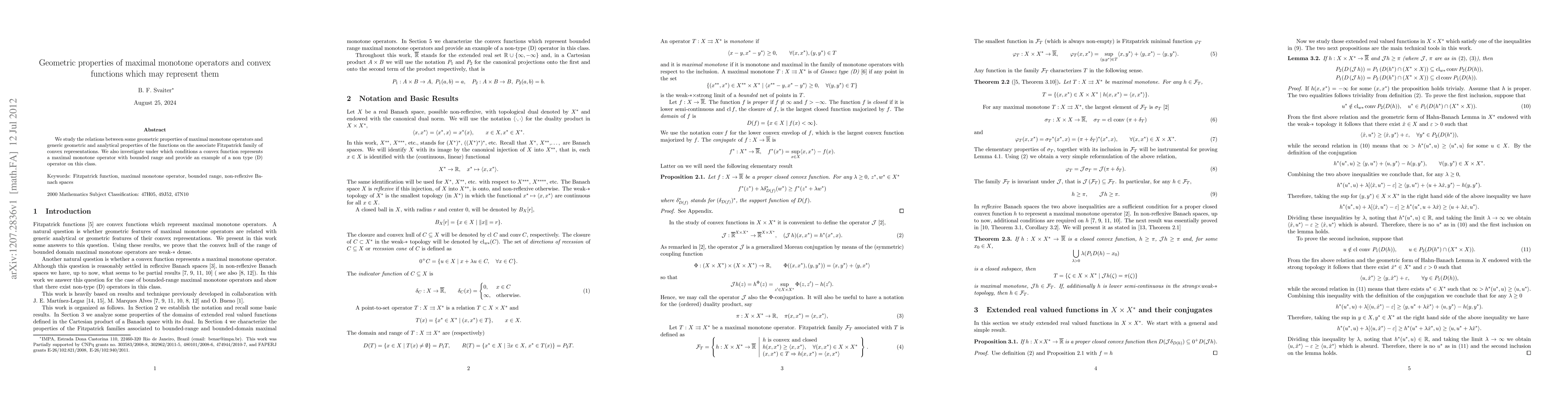 Summary: This paper explores the geometric properties of maximal monotone operators and their convex function representations, examining conditions under which convex functions can represent such operators, and provides an example of a non type (D) operator within this class.