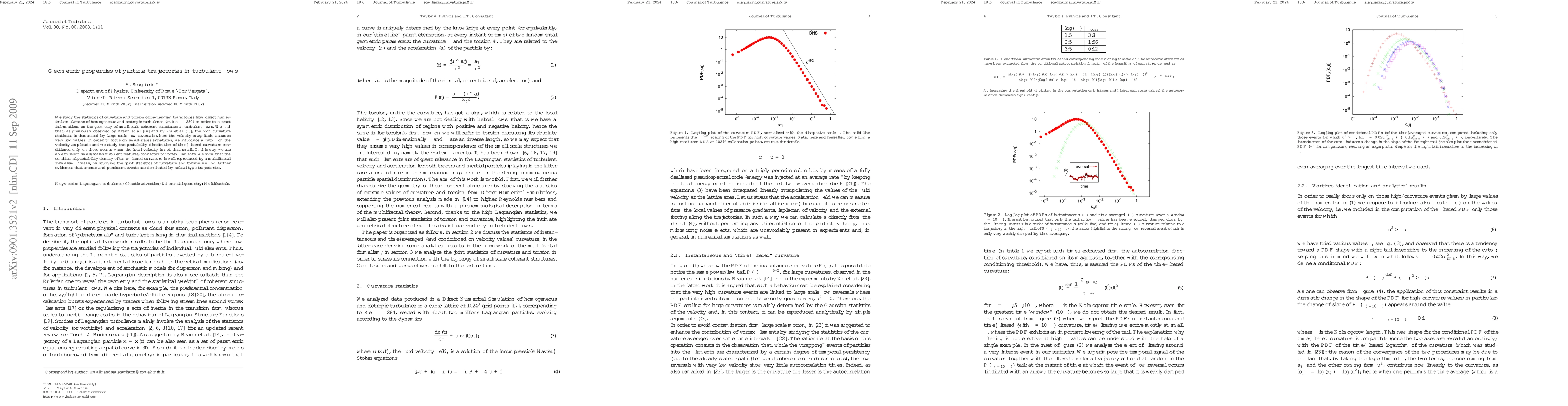 This paper investigates the geometric properties of particle trajectories in turbulent flows through direct numerical simulations, focusing on curvature and torsion statistics. It reveals that small-scale coherent structures, linked to vortex filaments, exhibit multifractal behavior and helical trajectories dominate intense events.